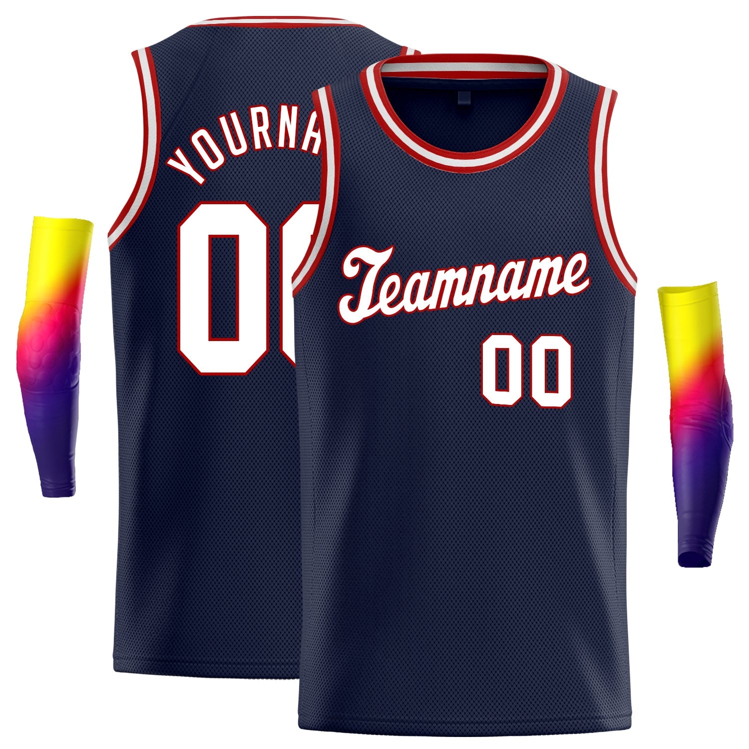 Navy Blue and Red Basketball Jerseys