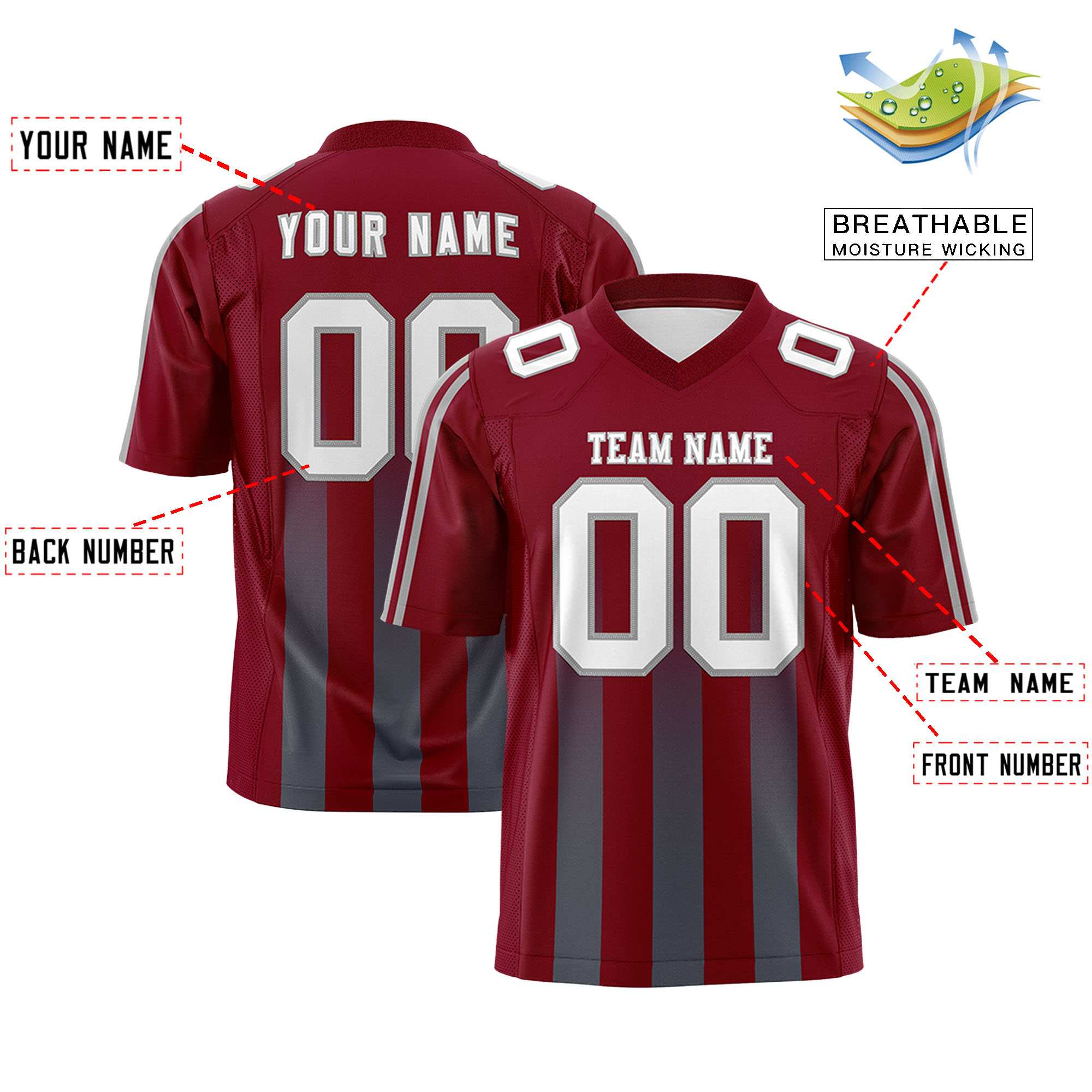 Custom Cardinal Dark Gray Vertical Fine Stripe Gradient Fashion Personalized Team Football Jersey