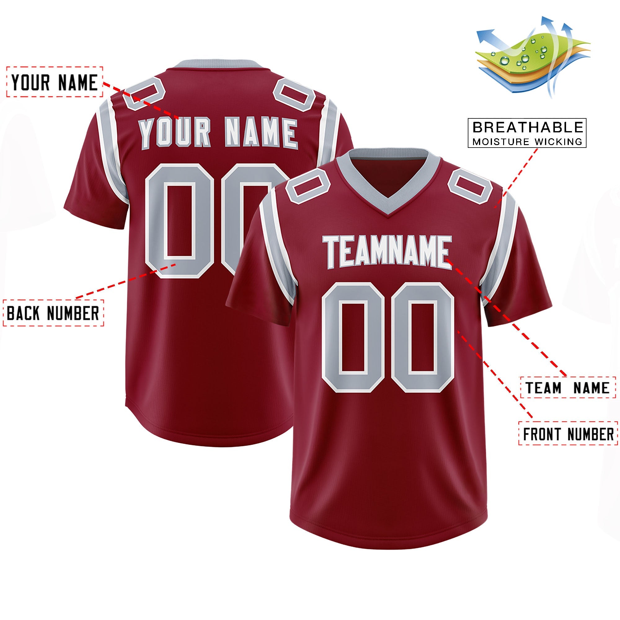 Custom Crimson Personalized Shoulder Cut Two-Tone Authentic Football Jersey