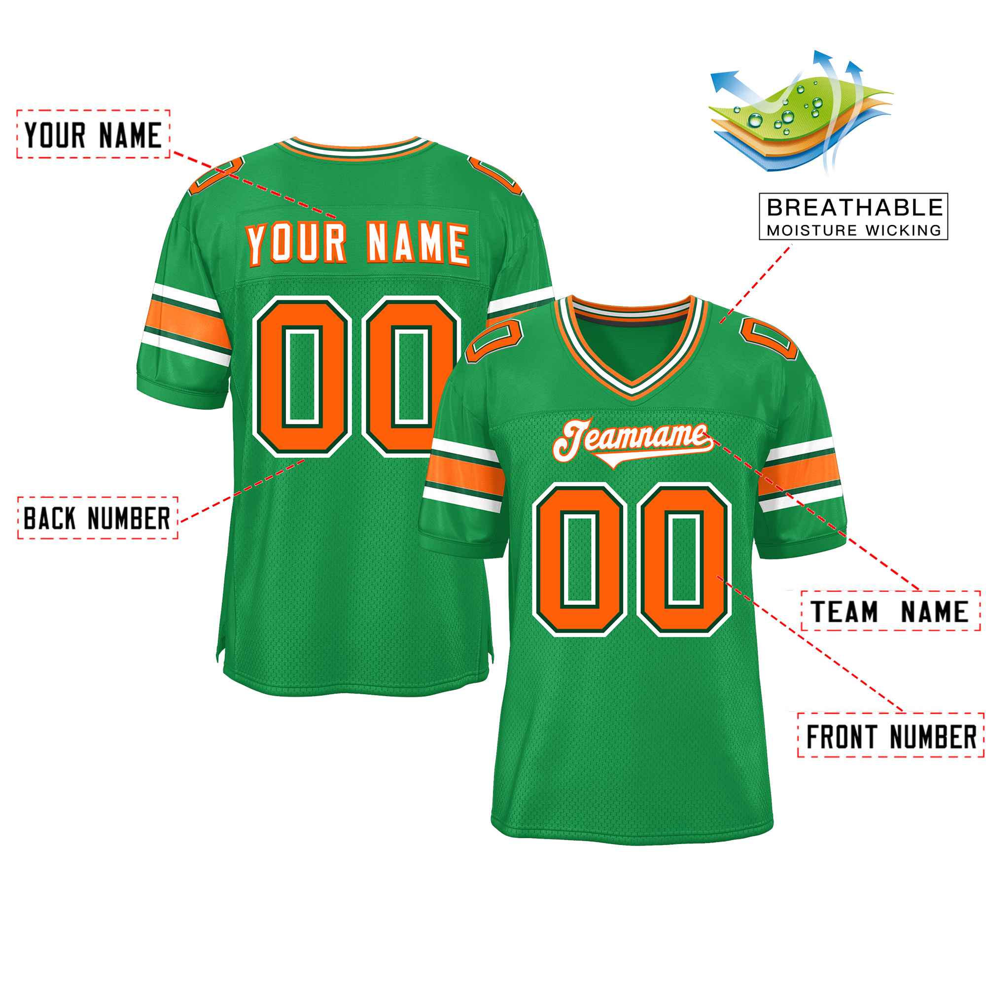 Custom Kelly Green Personalized Classic Authentic Football Jersey