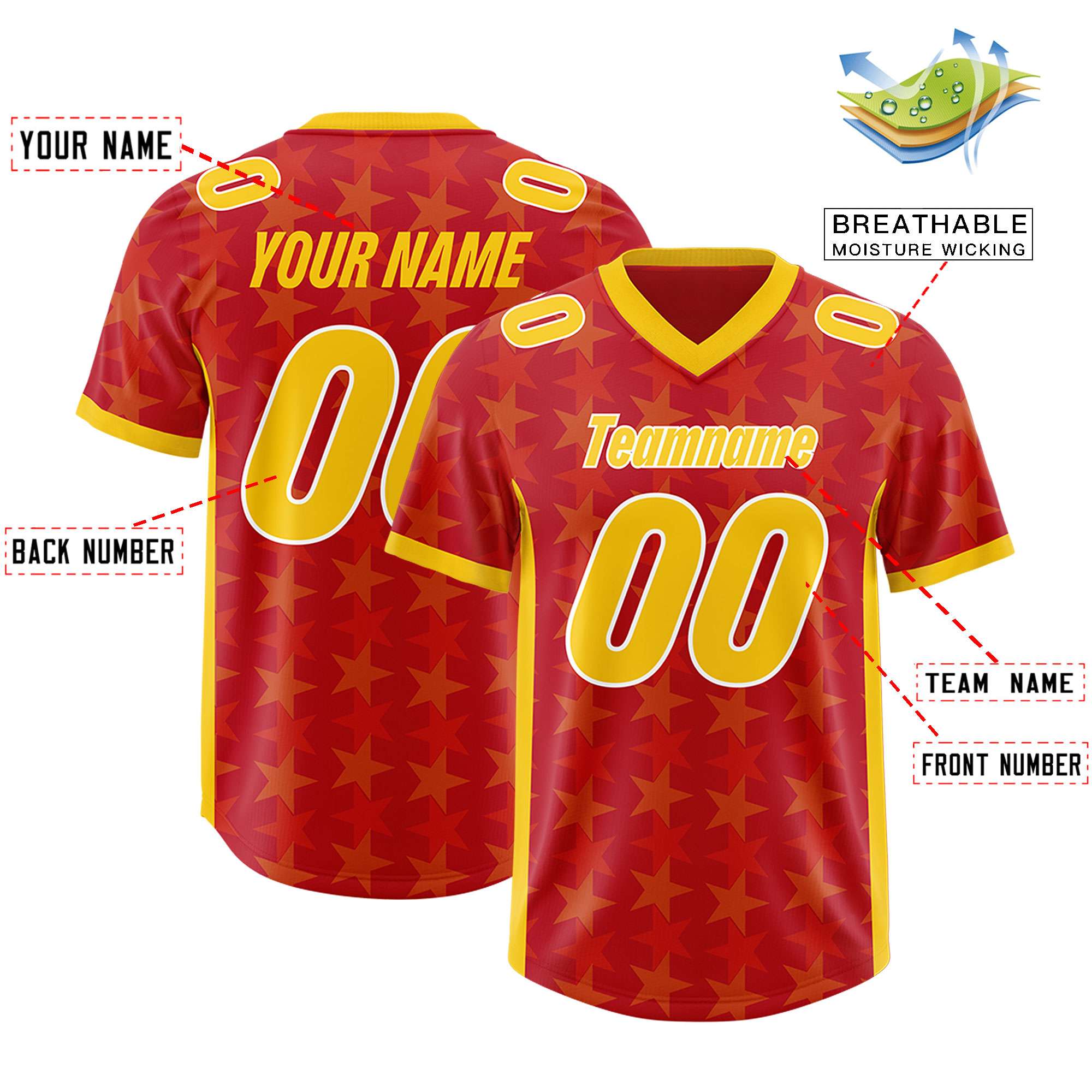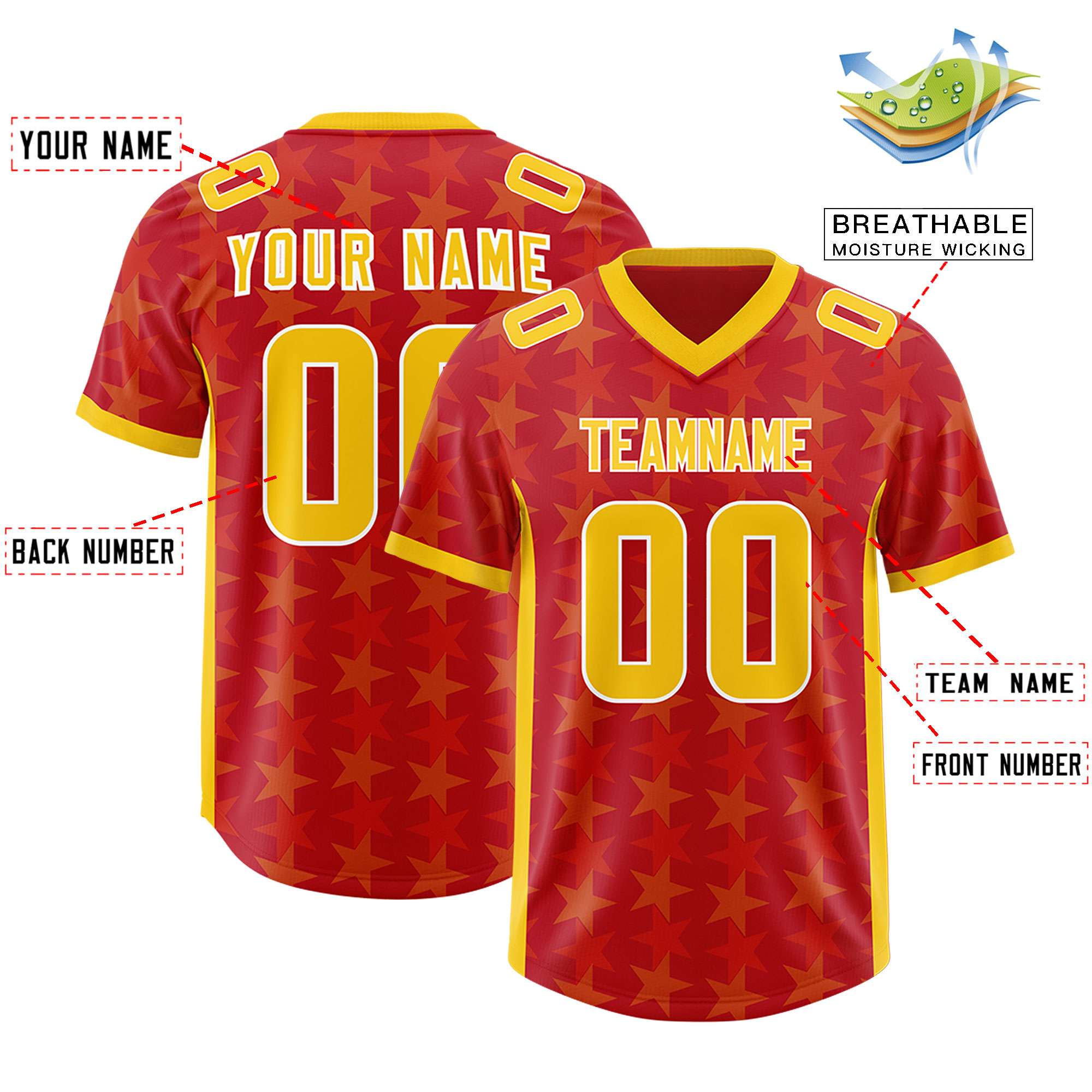 Custom Red Yellow Personalized All Star Graffiti Pattern Authentic Football Jersey