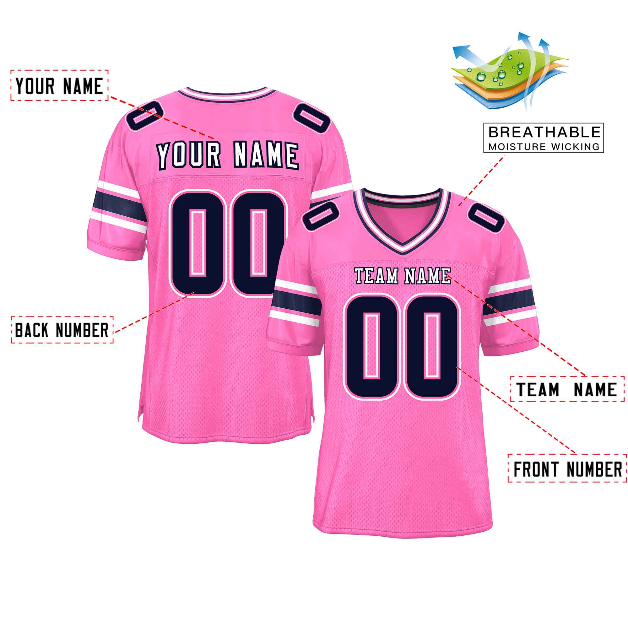 Custom Pink Personalized Classic Authentic Football Jersey