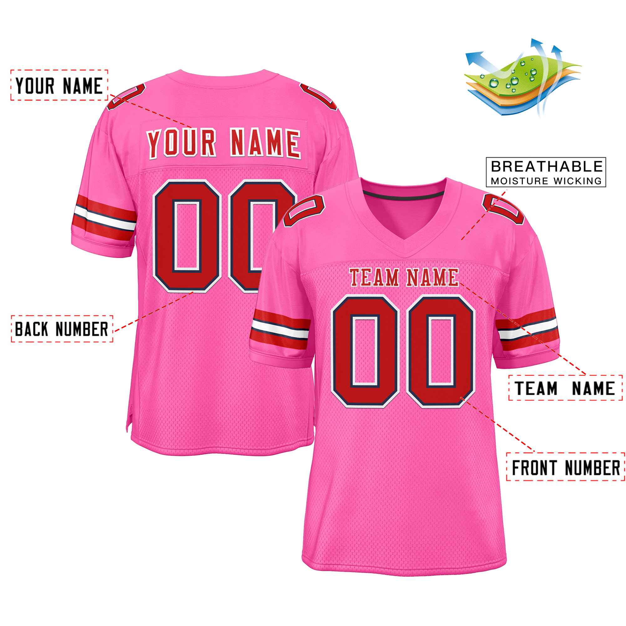 Custom Rose Pink Red-White Classic Style Authentic Football Jersey