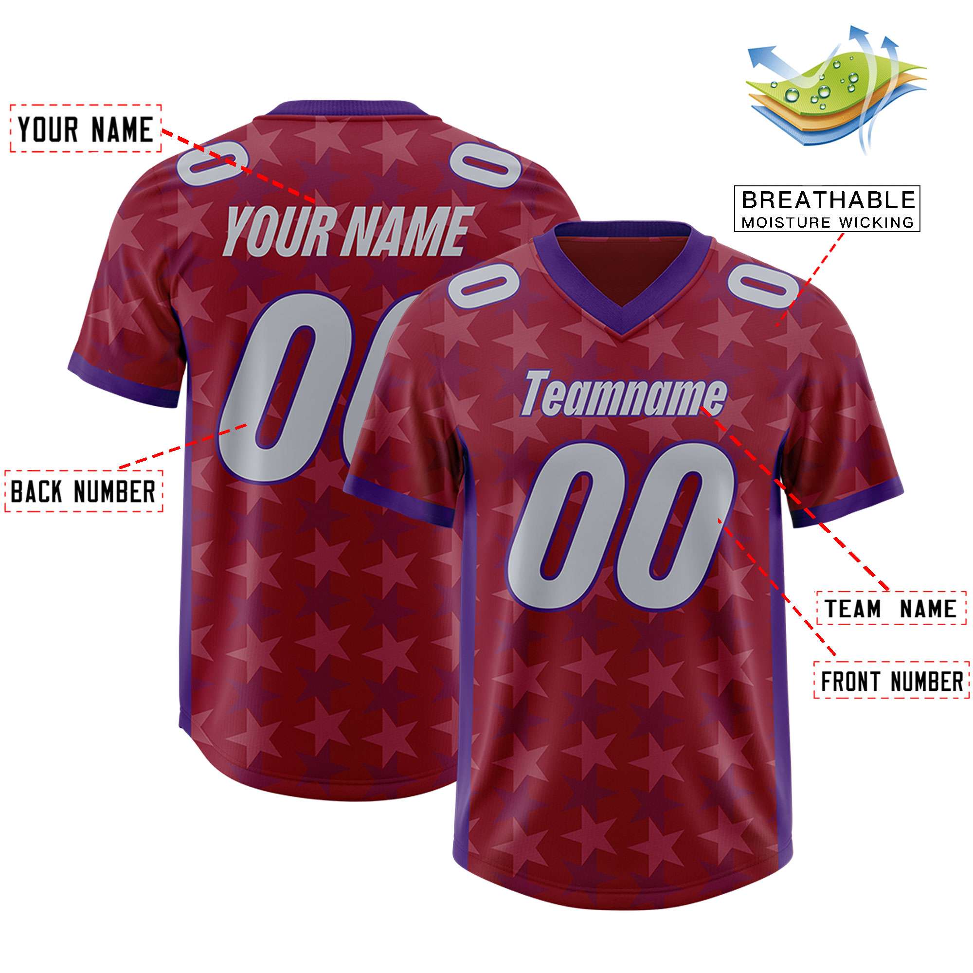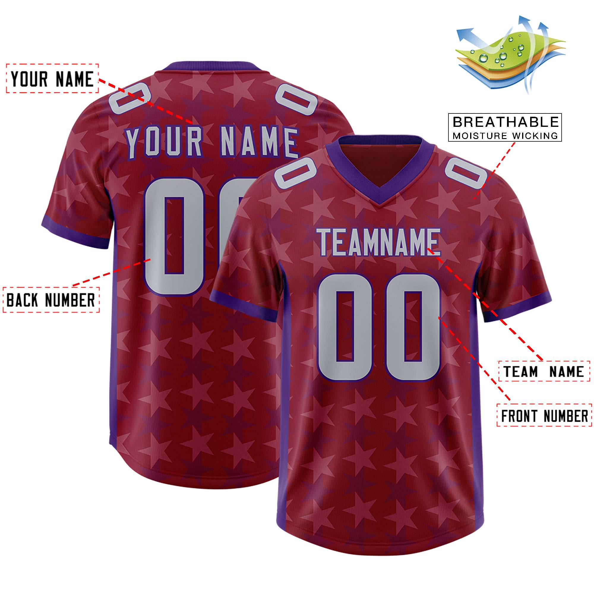 Custom Crimson Purple Personalized All Star Graffiti Pattern Authentic Football Jersey