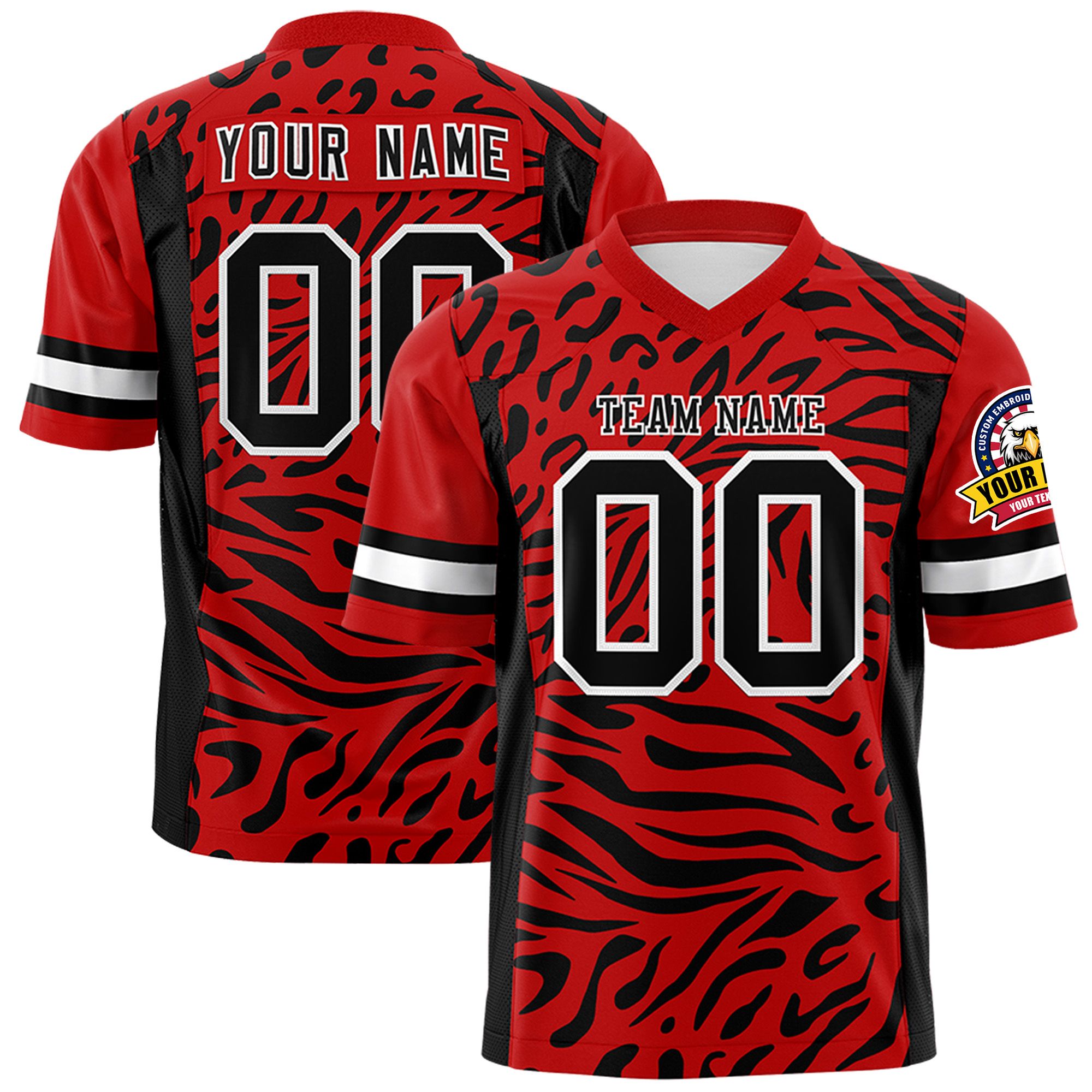 Custom Red Black-White Personalized Zebra Stripes Pattern Authentic Football Jersey