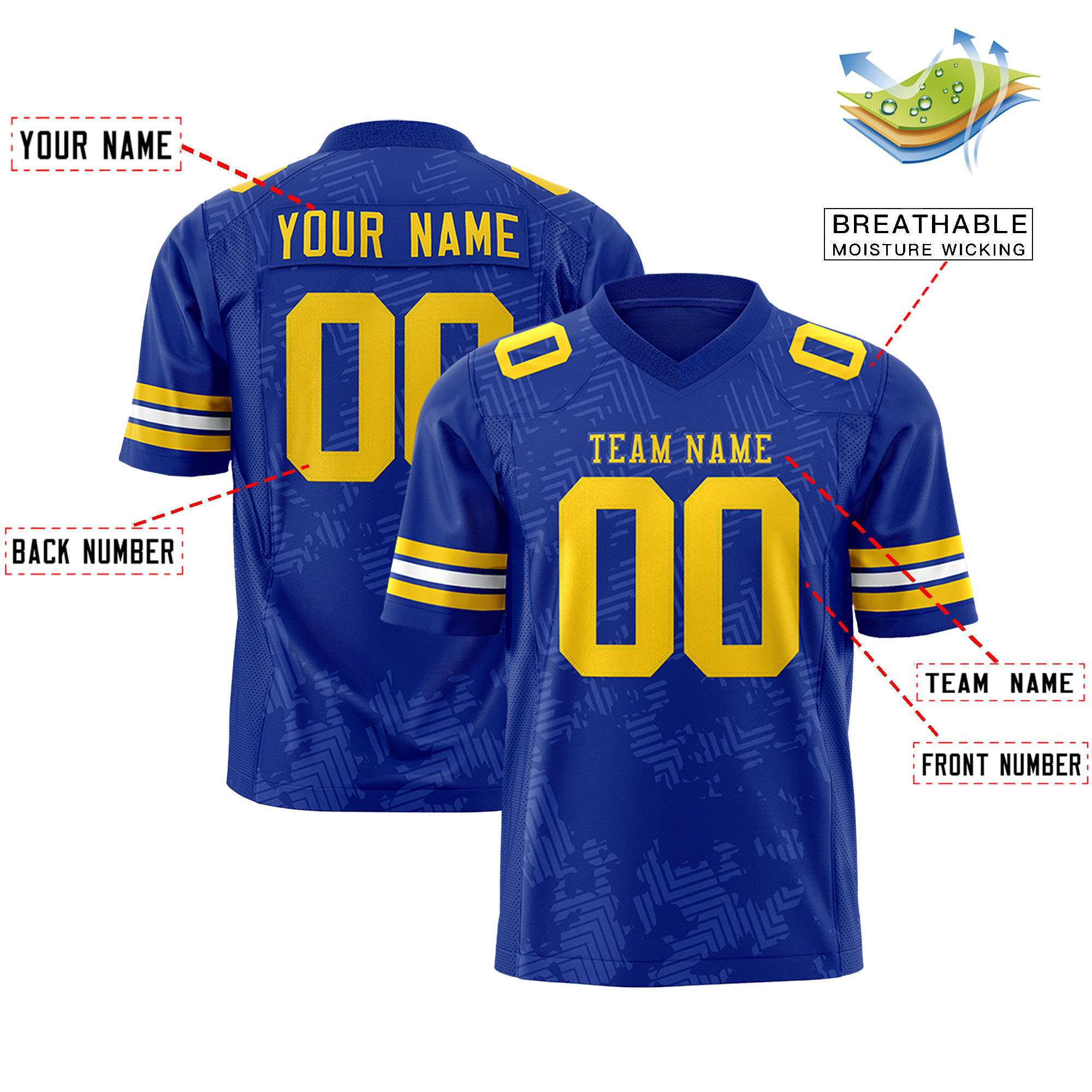 Custom Royal Gold Personalized Graffiti Line Design Authentic Football Jersey