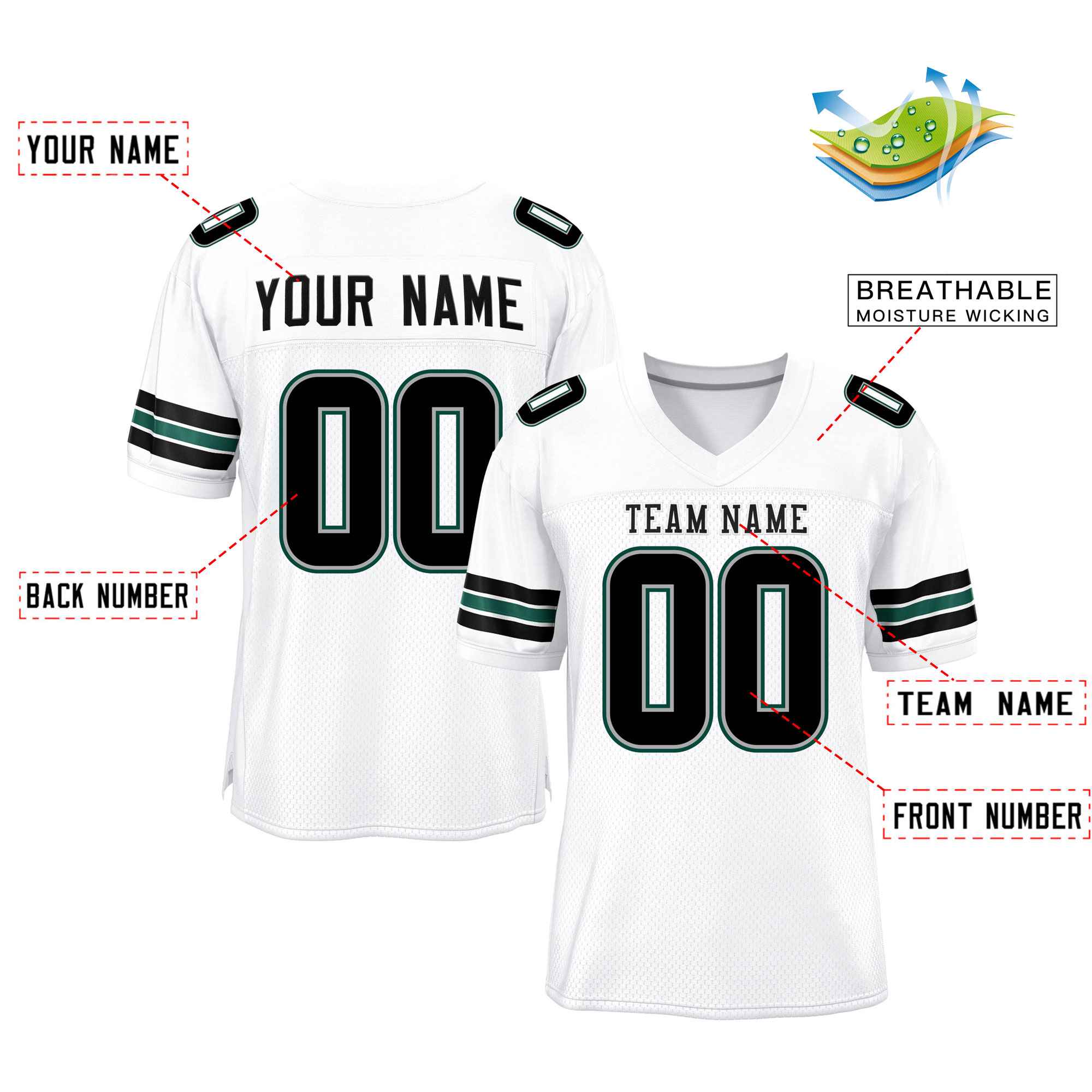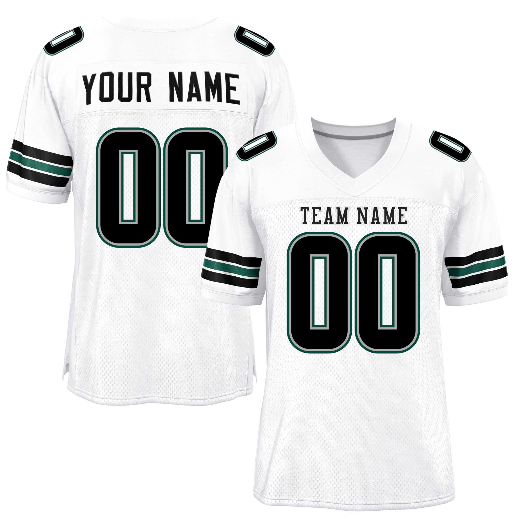 Custom White Black-Midnight Green Classic Style Mesh Authentic Football Jersey
