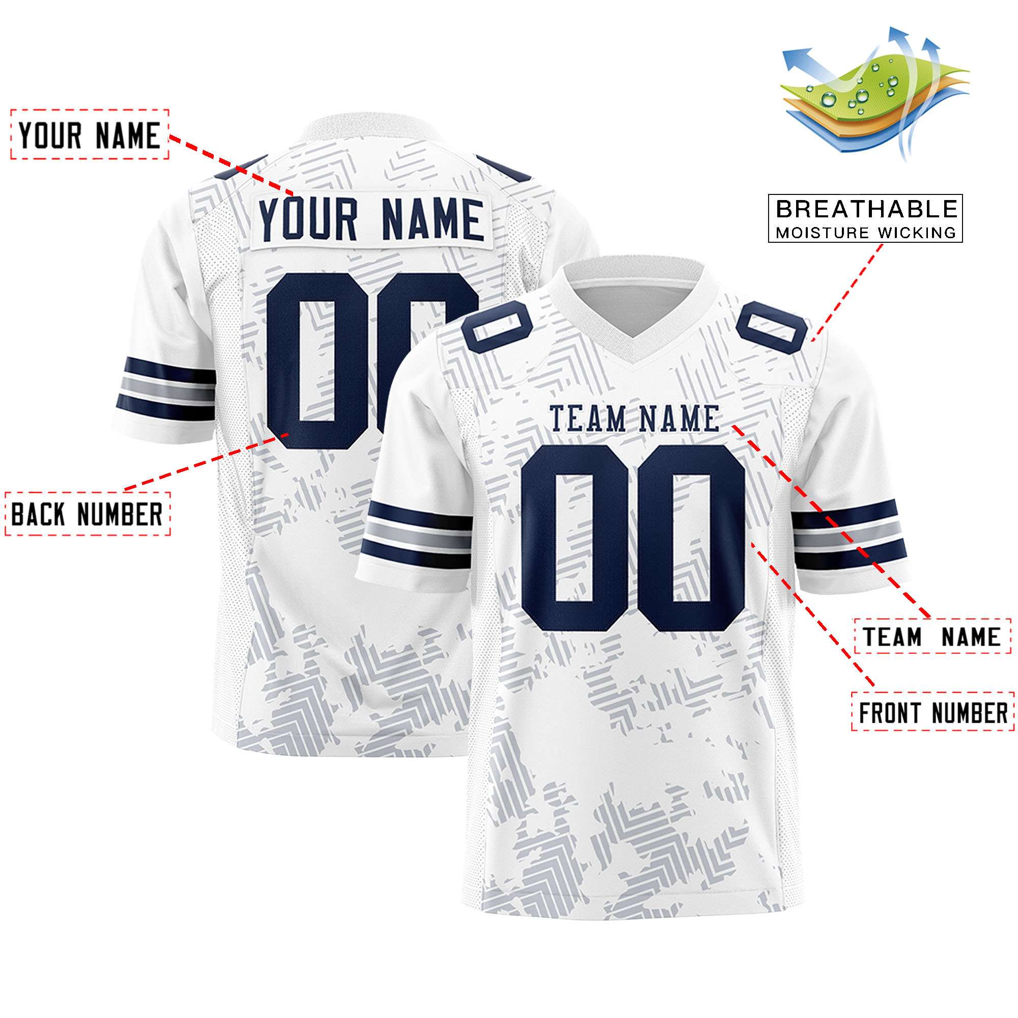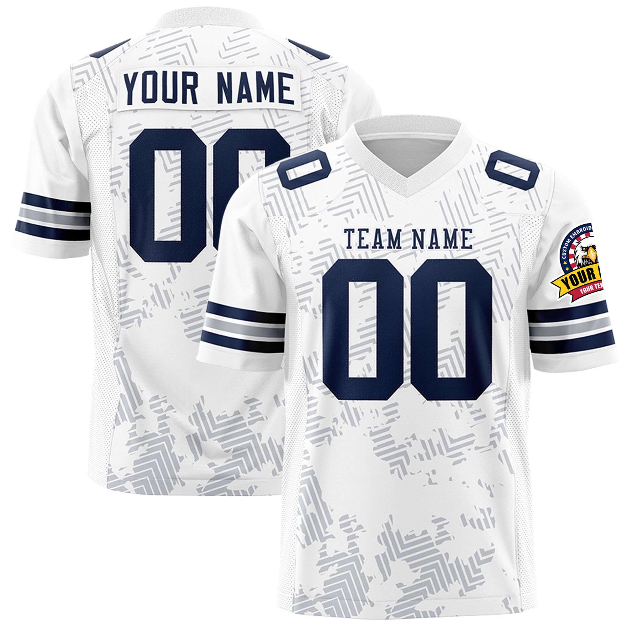 Custom White Navy Personalized Graffiti Line Design Authentic Football Jersey