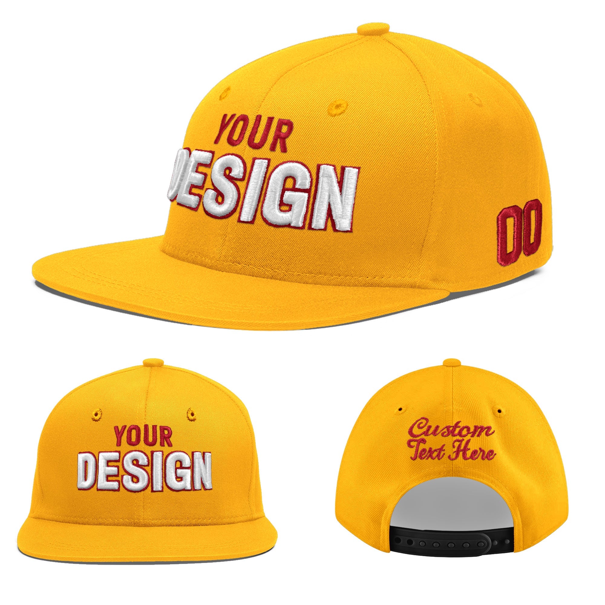 Custom Yellow 3D Puff Embroidery Flat Embroidery Casual Sport Baseball Cap