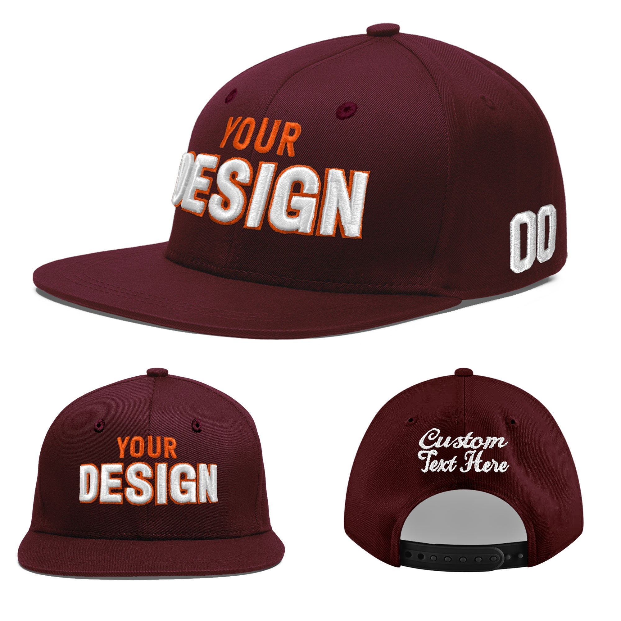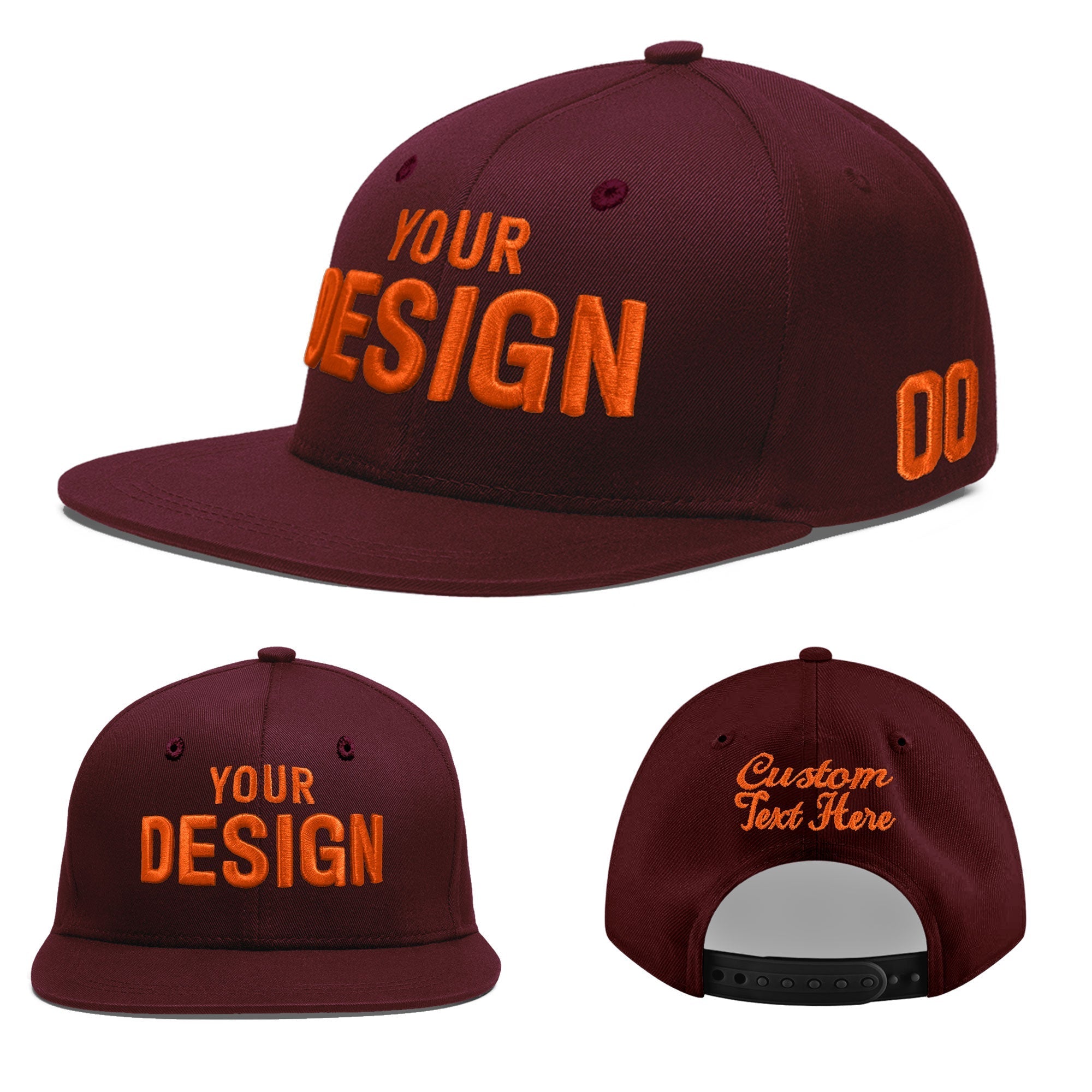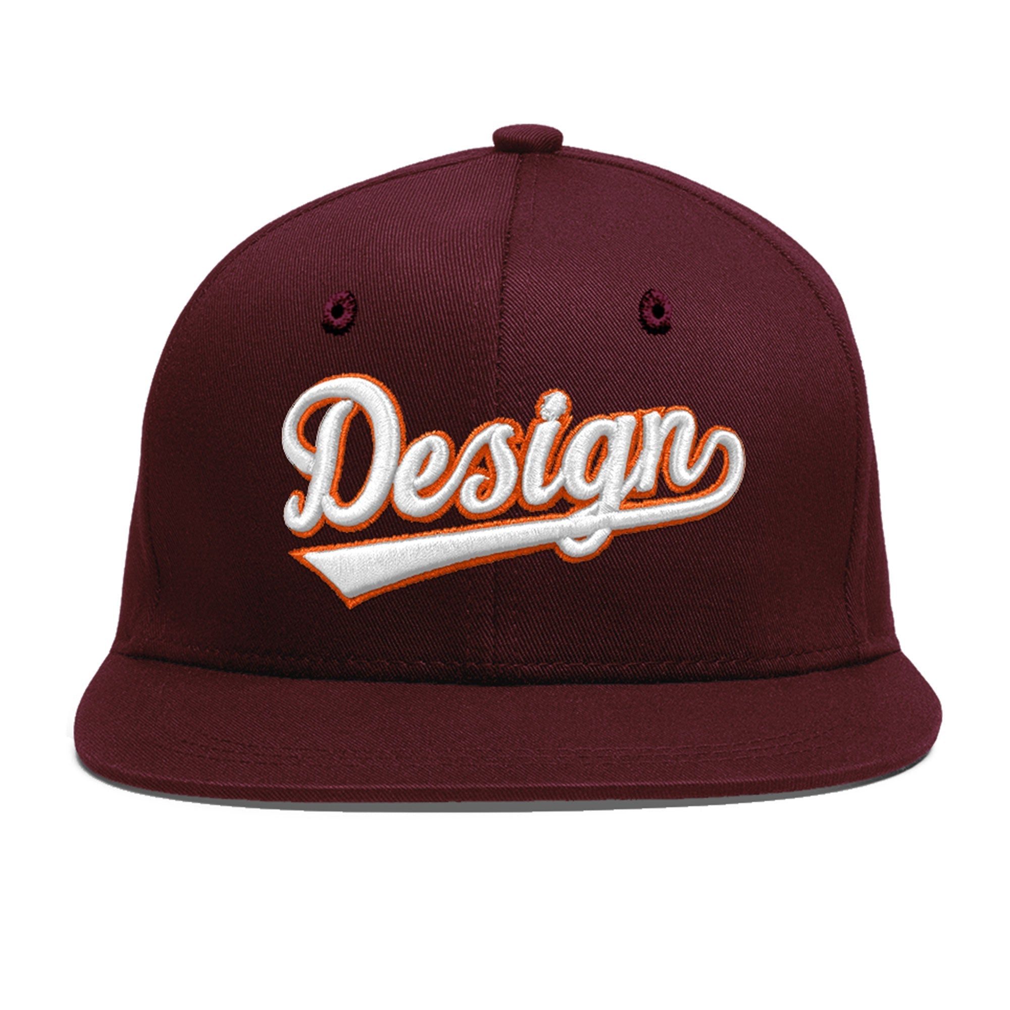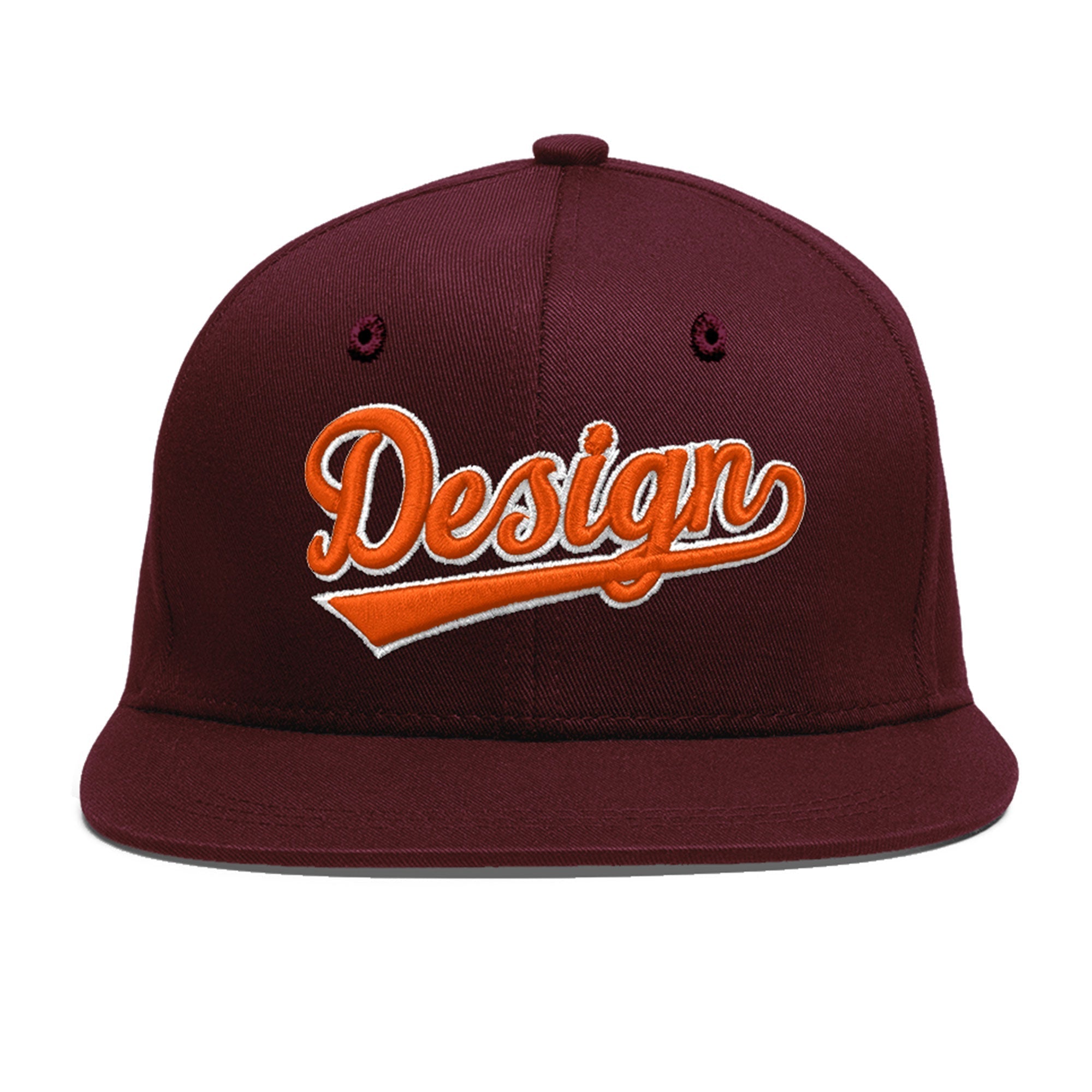 Custom Burgundy 3D Puff Embroidery Flat Embroidery Casual Sport Baseball Cap