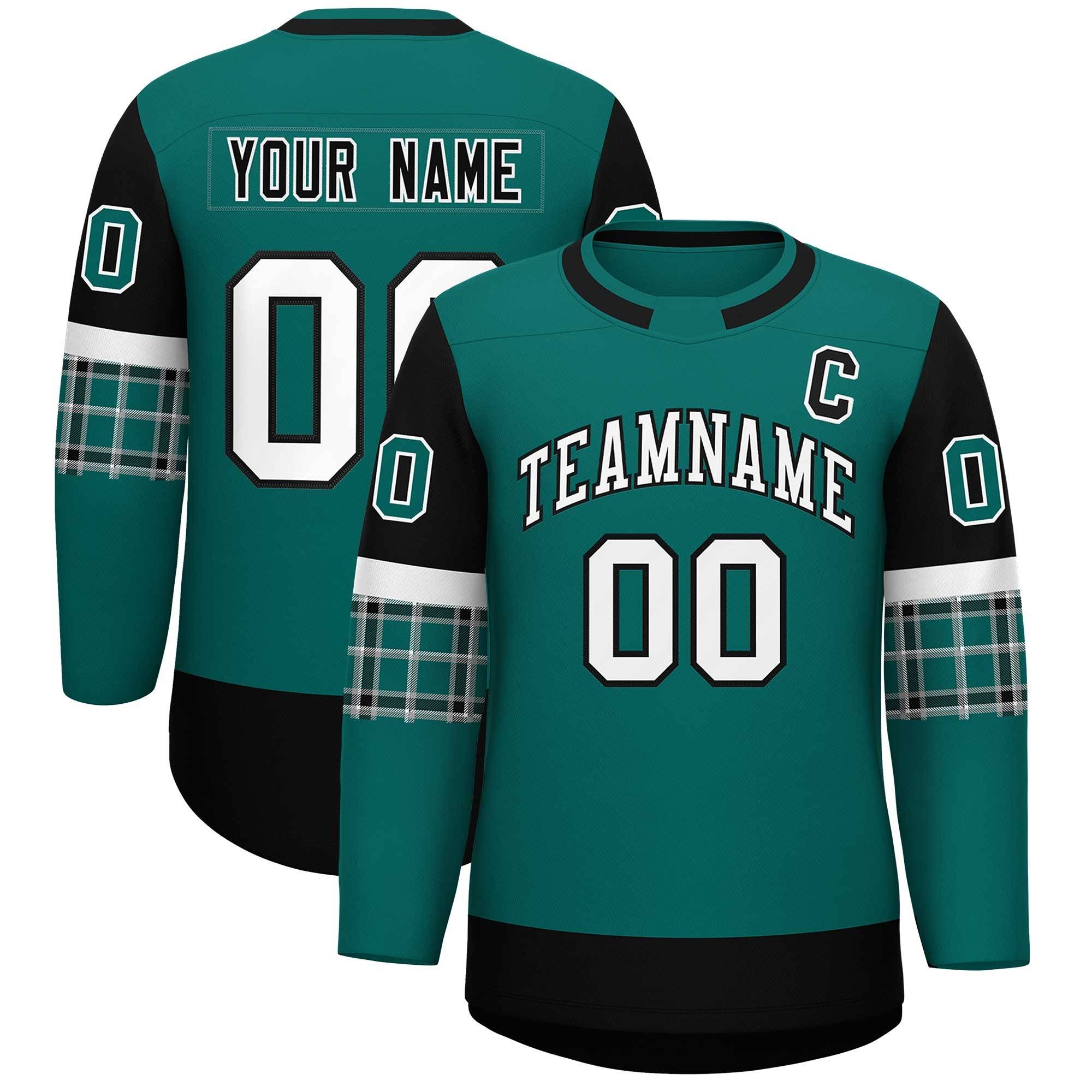 Custom Aqua Black Personalized Raglan Sleeves Round-Neck Hockey Jersey