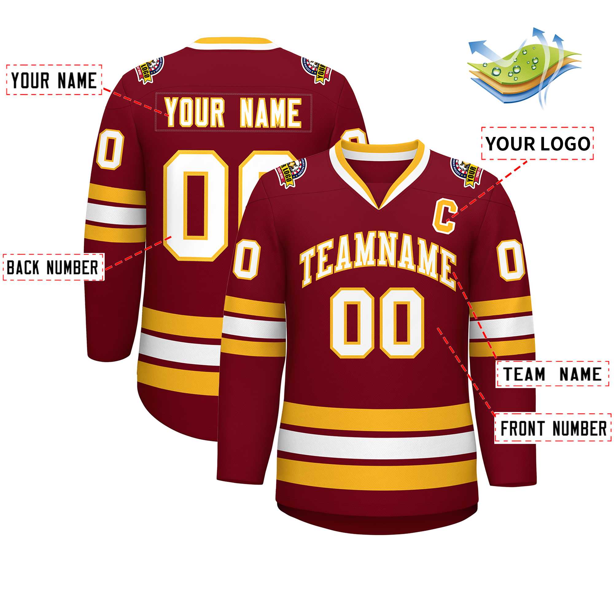 Custom Crimson White-Gold Classic Style Hockey Jersey