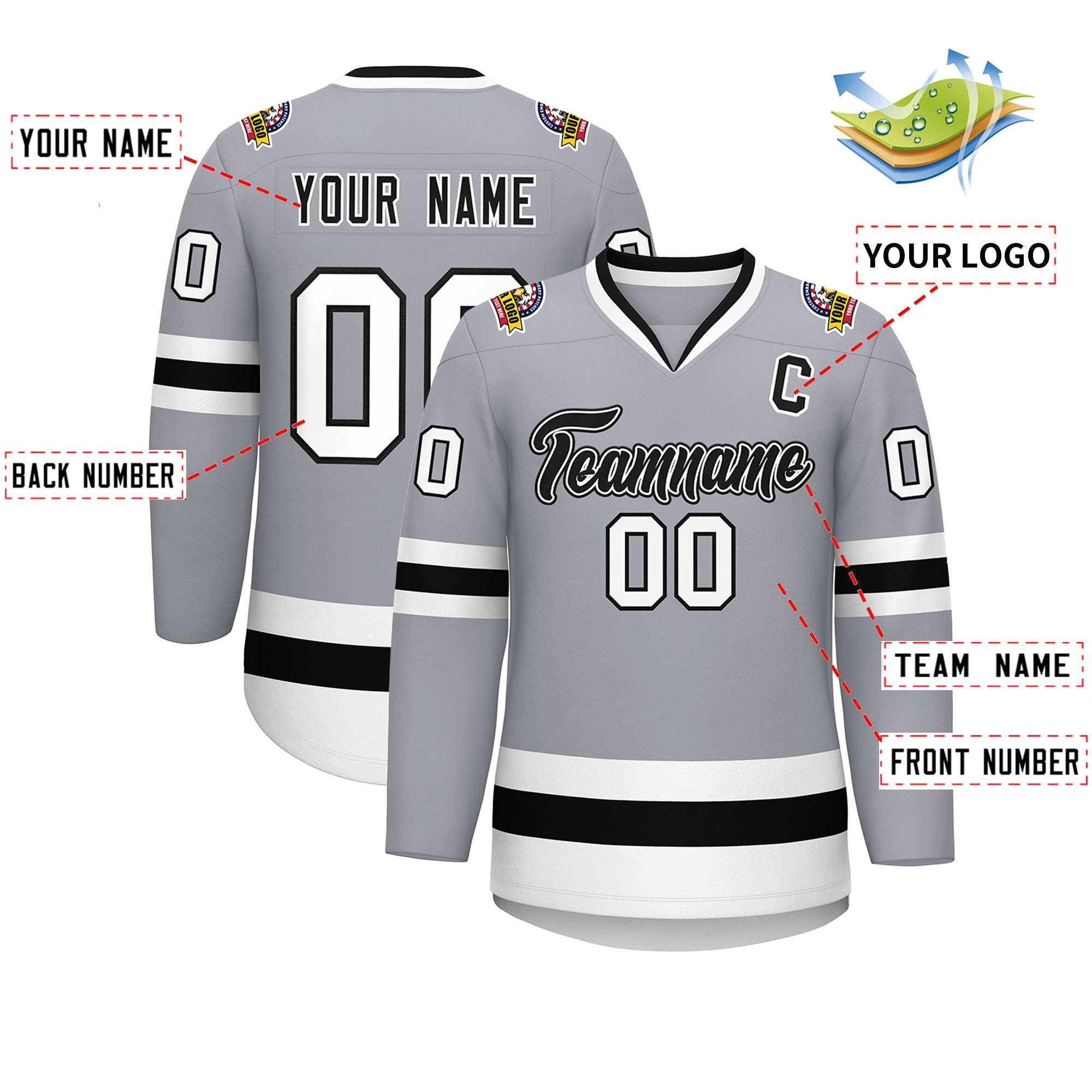 Custom Gray Black White-Black Classic Style Hockey Jersey