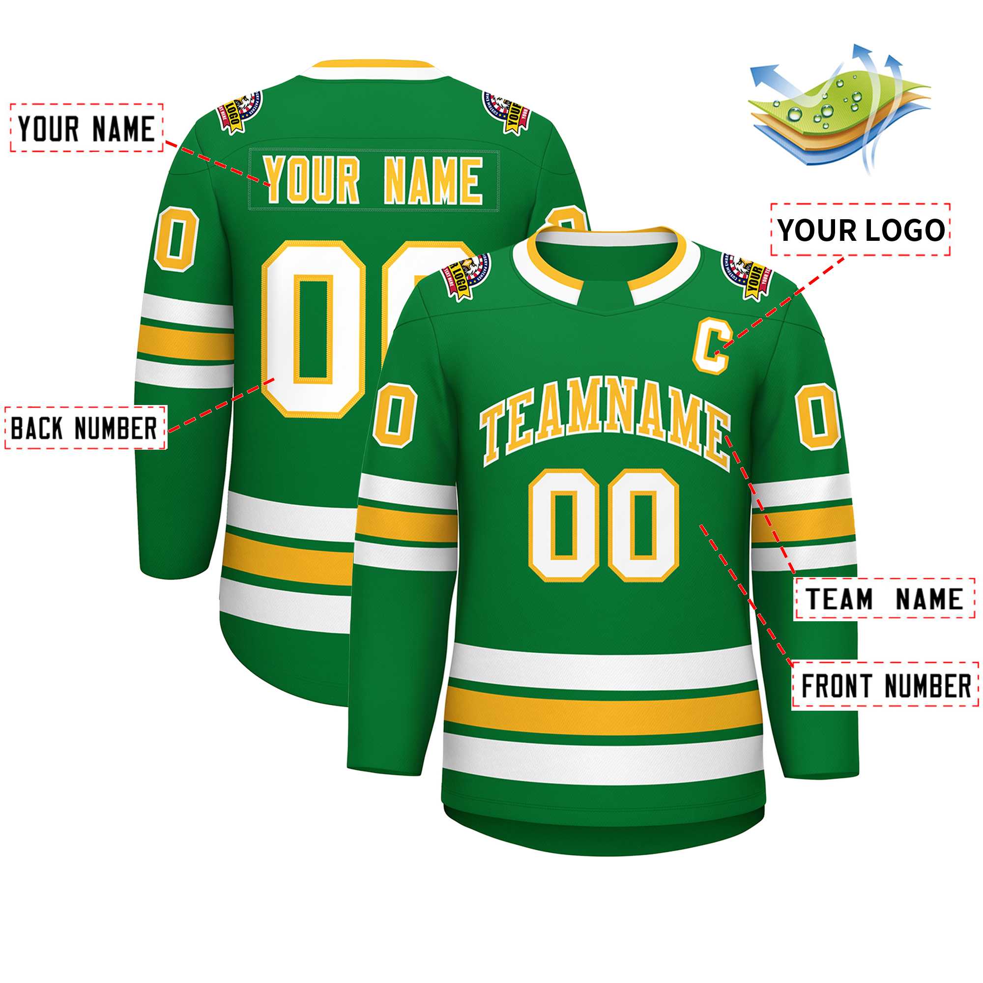 Custom Kelly Green Gold-White Classic Style Hockey Jersey