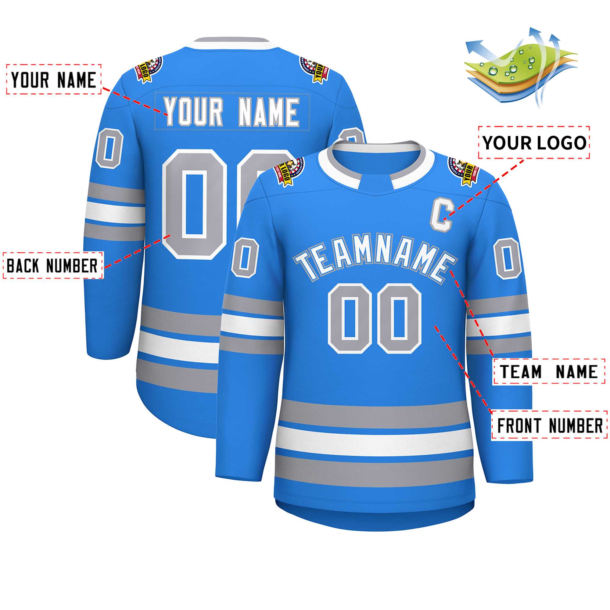 Custom Powder Blue White Powder Blue-Gray Classic Style Hockey Jersey
