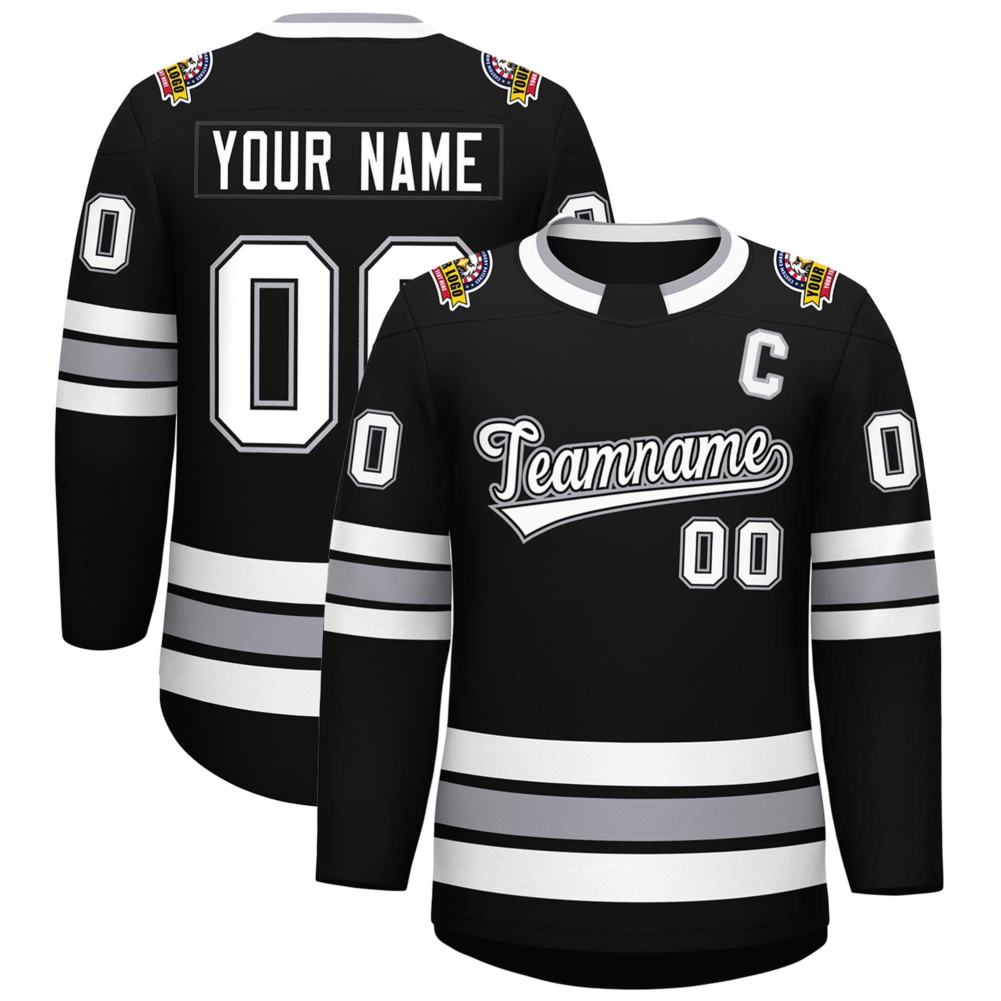 Custom Black White Black-Gray Classic Style Hockey Jersey