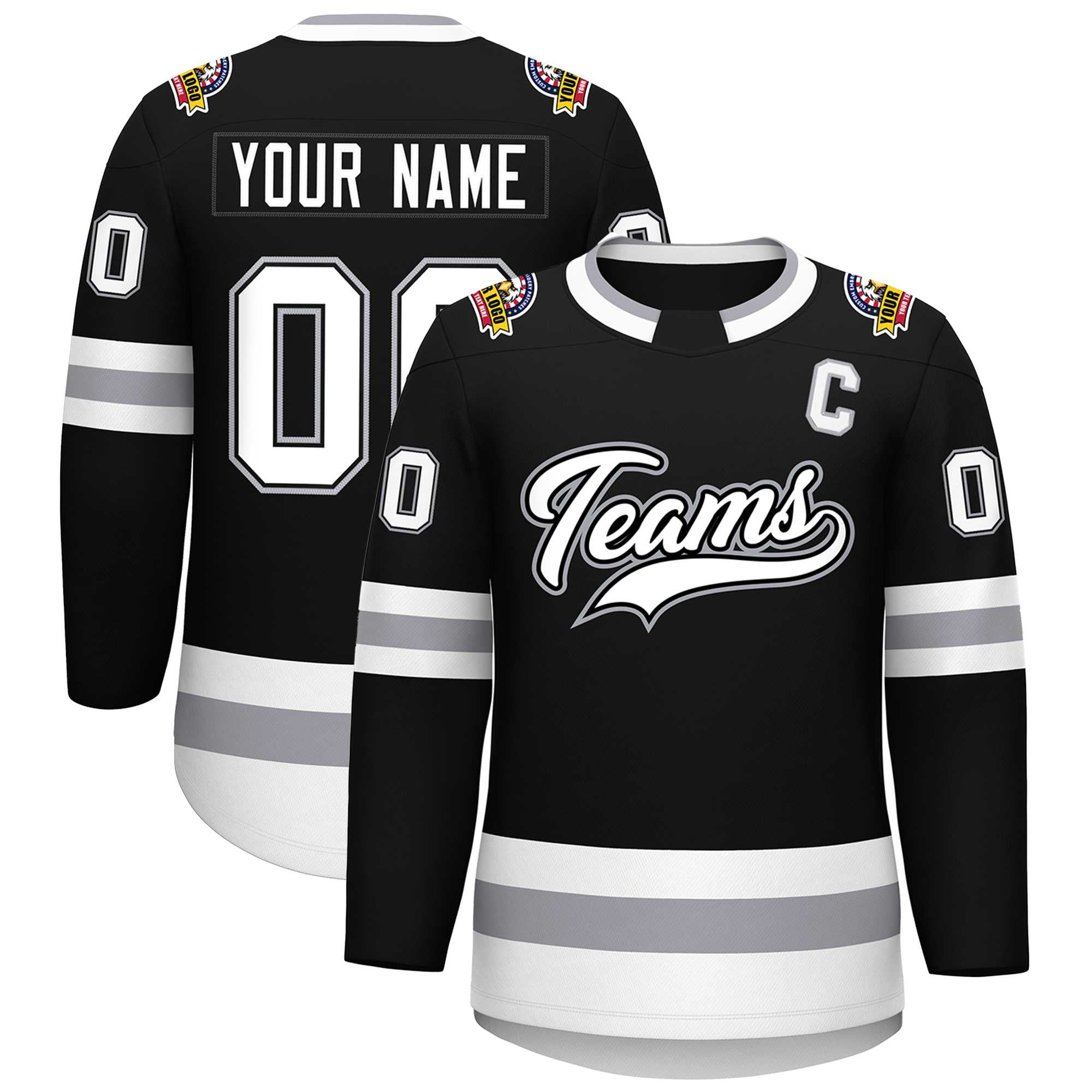 Custom Black White Black-Gray Classic Style Hockey Jersey