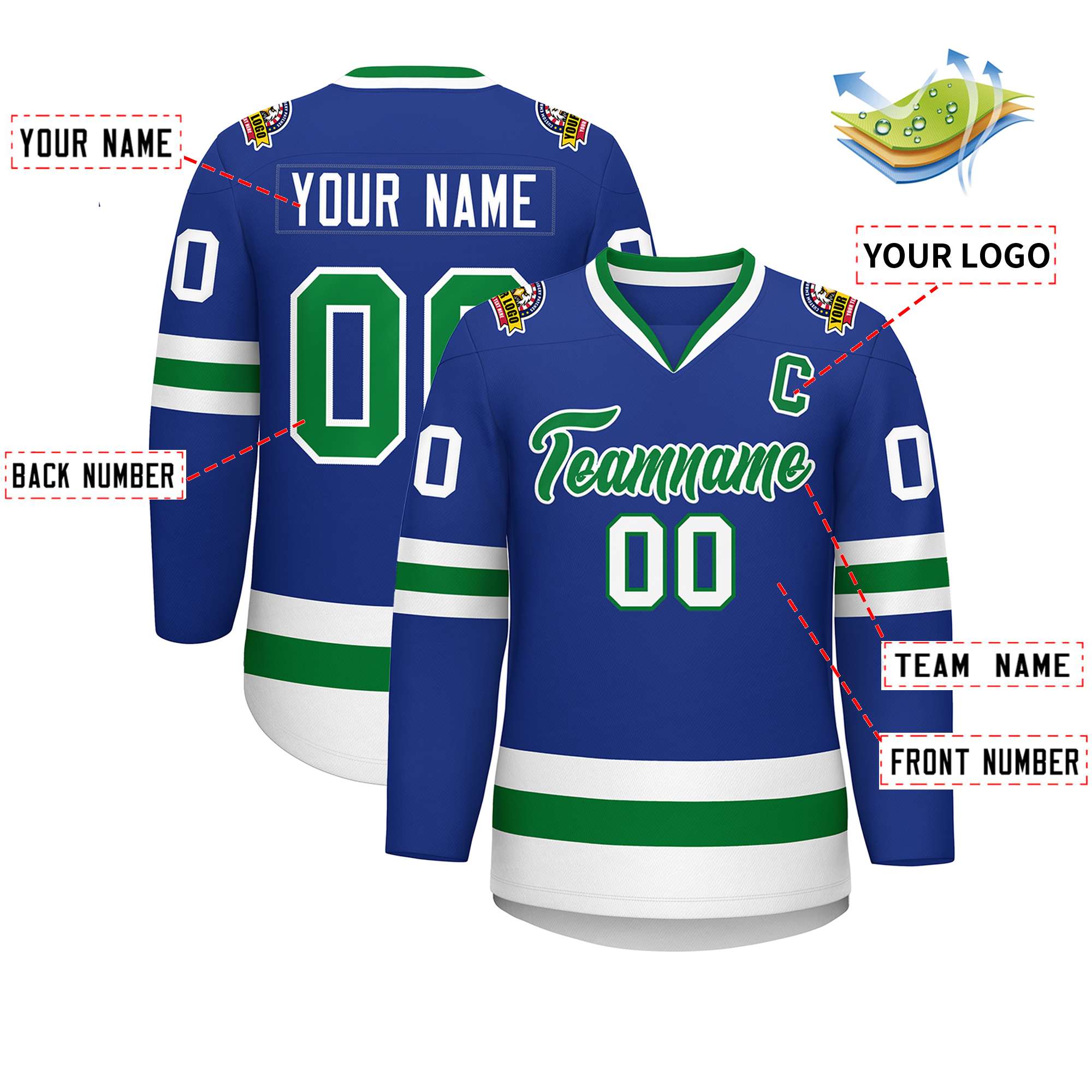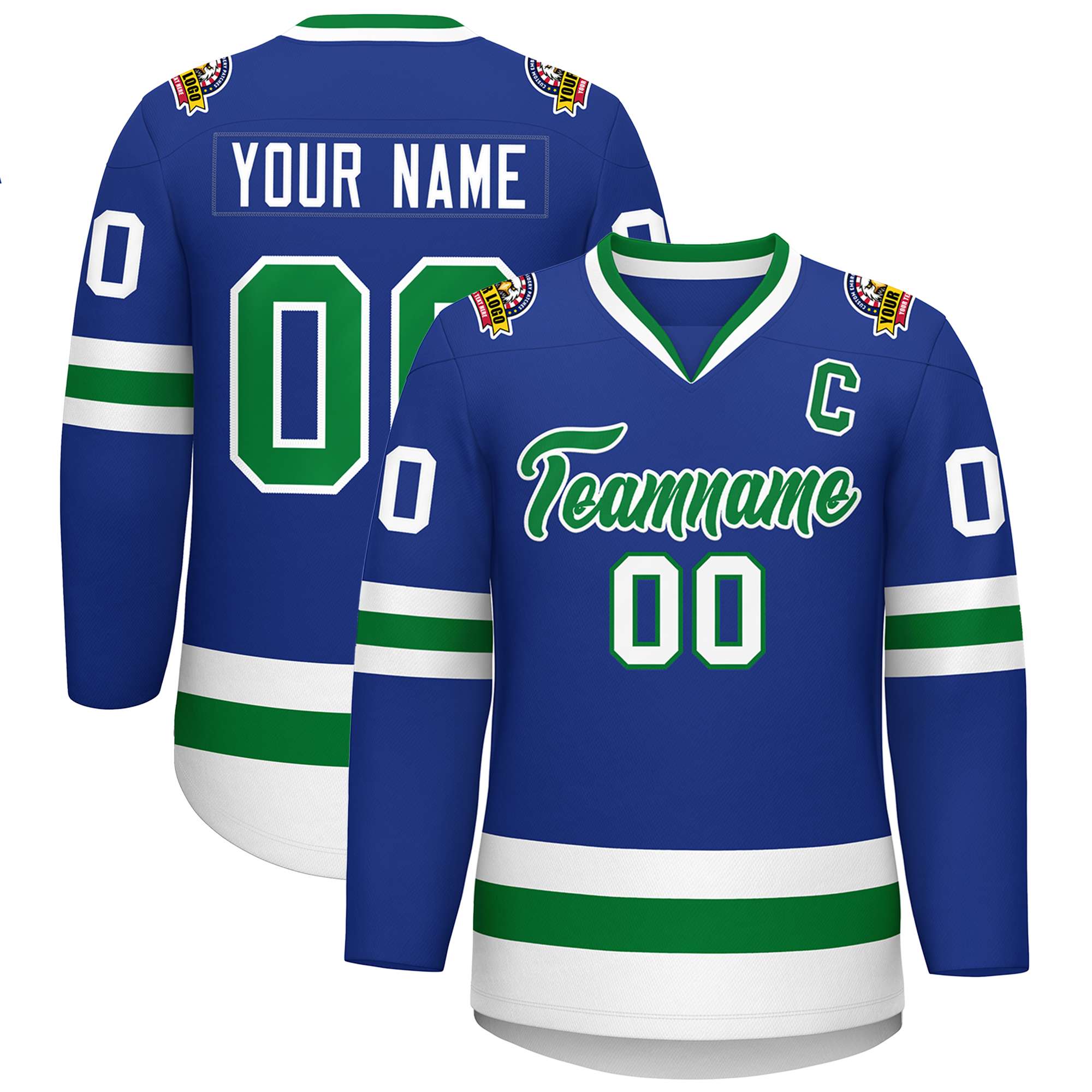 Custom Royal Kelly Green-White Classic Style Hockey Jersey