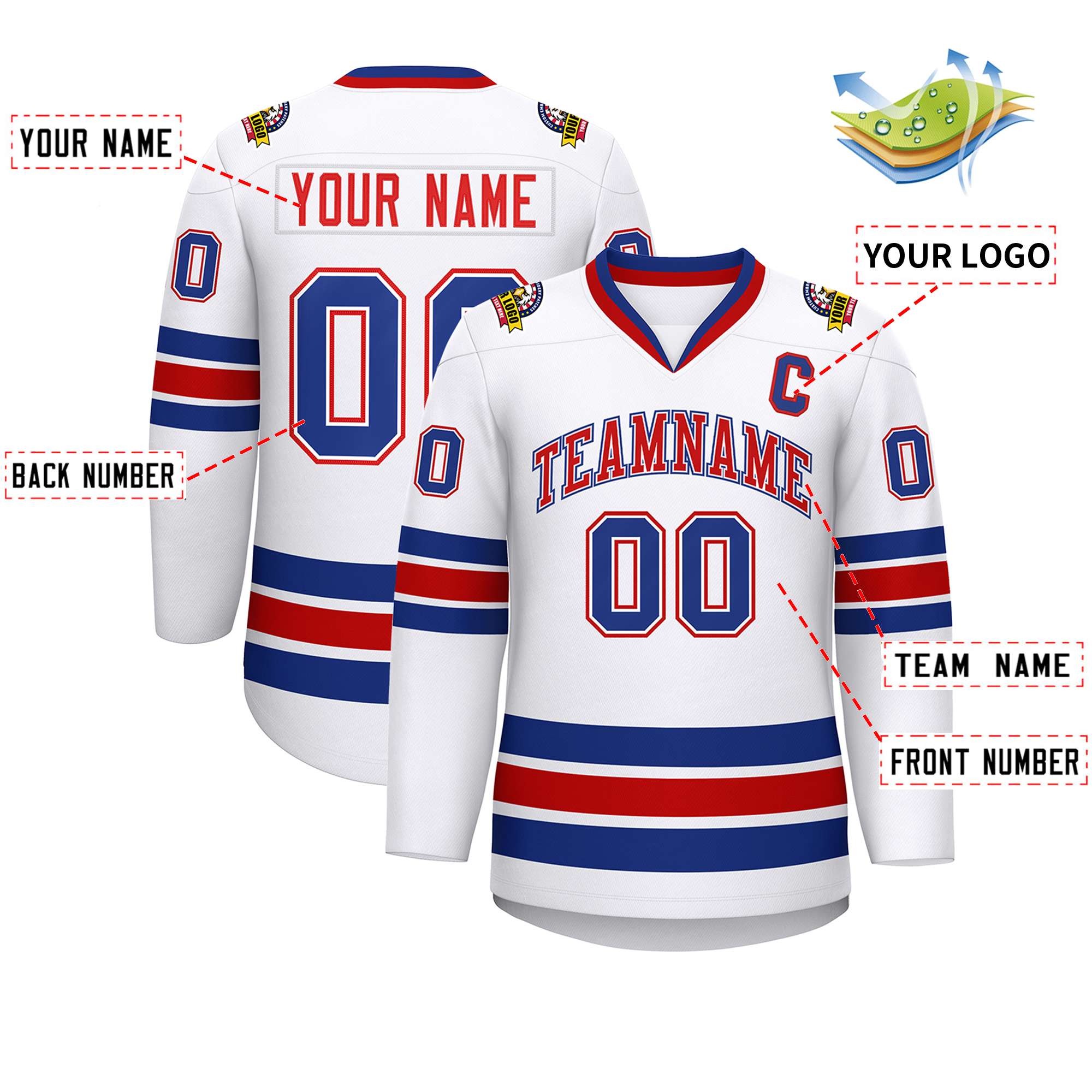 Custom White Red White-Royal Classic Style Hockey Jersey