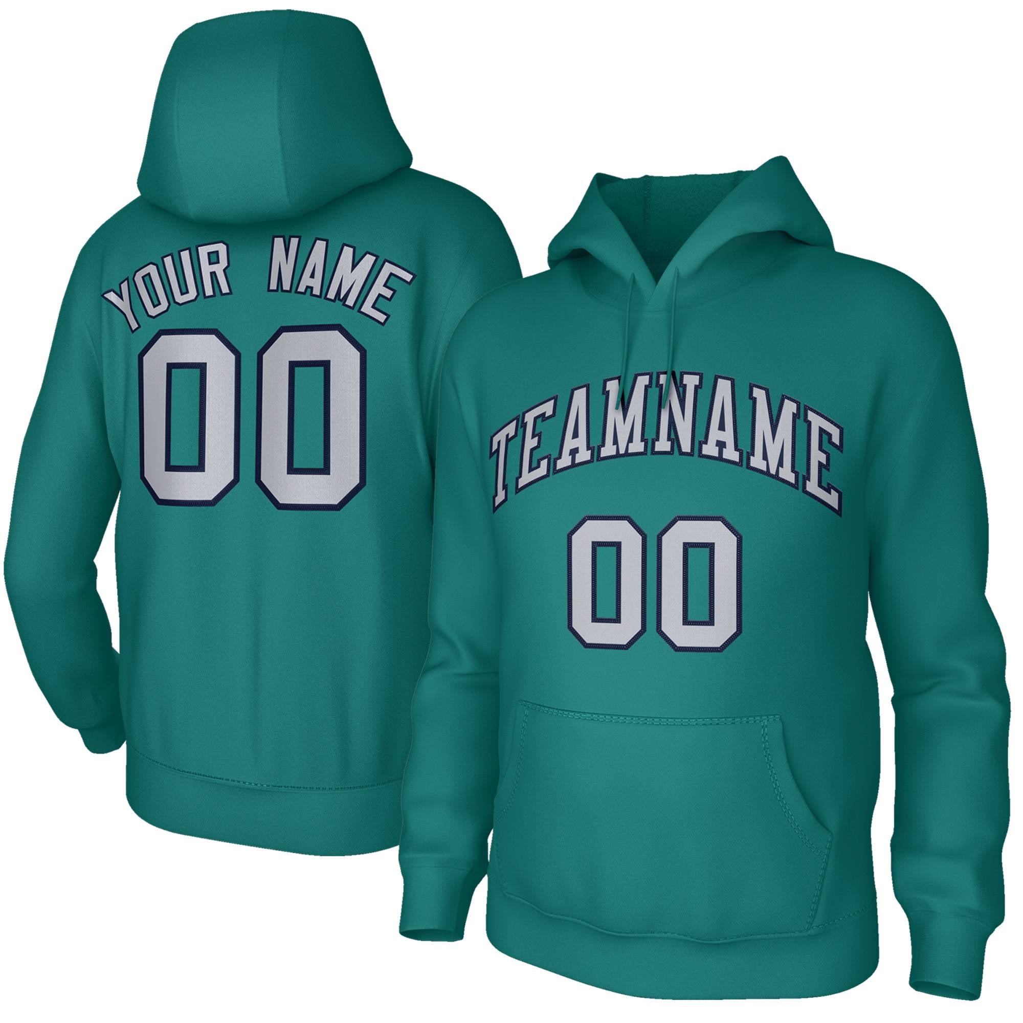 Custom Aqua Gray-Navy Classic Style Hoodie Fashion Athletic Pullover Sweatshirt