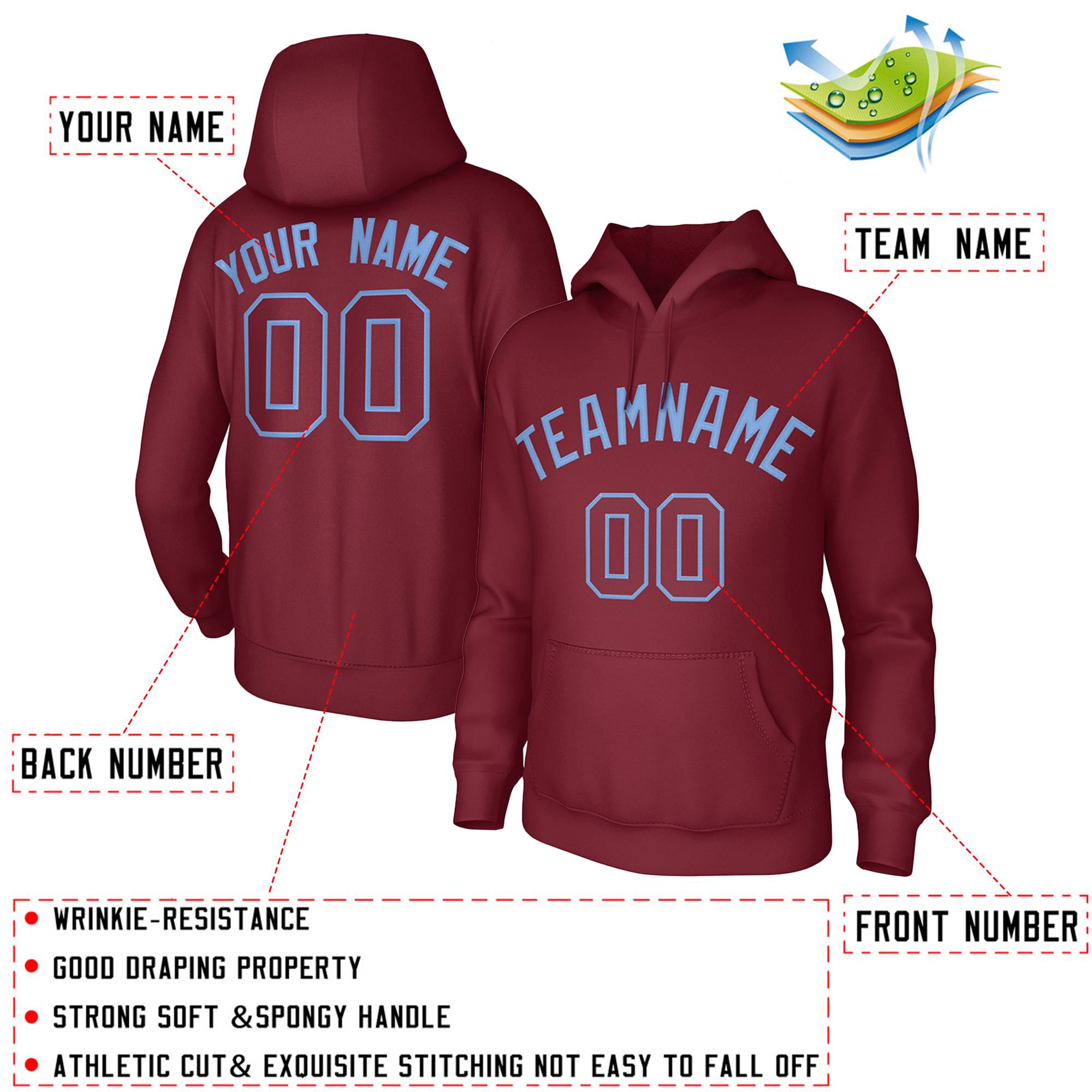 Custom Cardinal Light Blue Classic Style Sweatshirts Uniform Pullover Hoodie