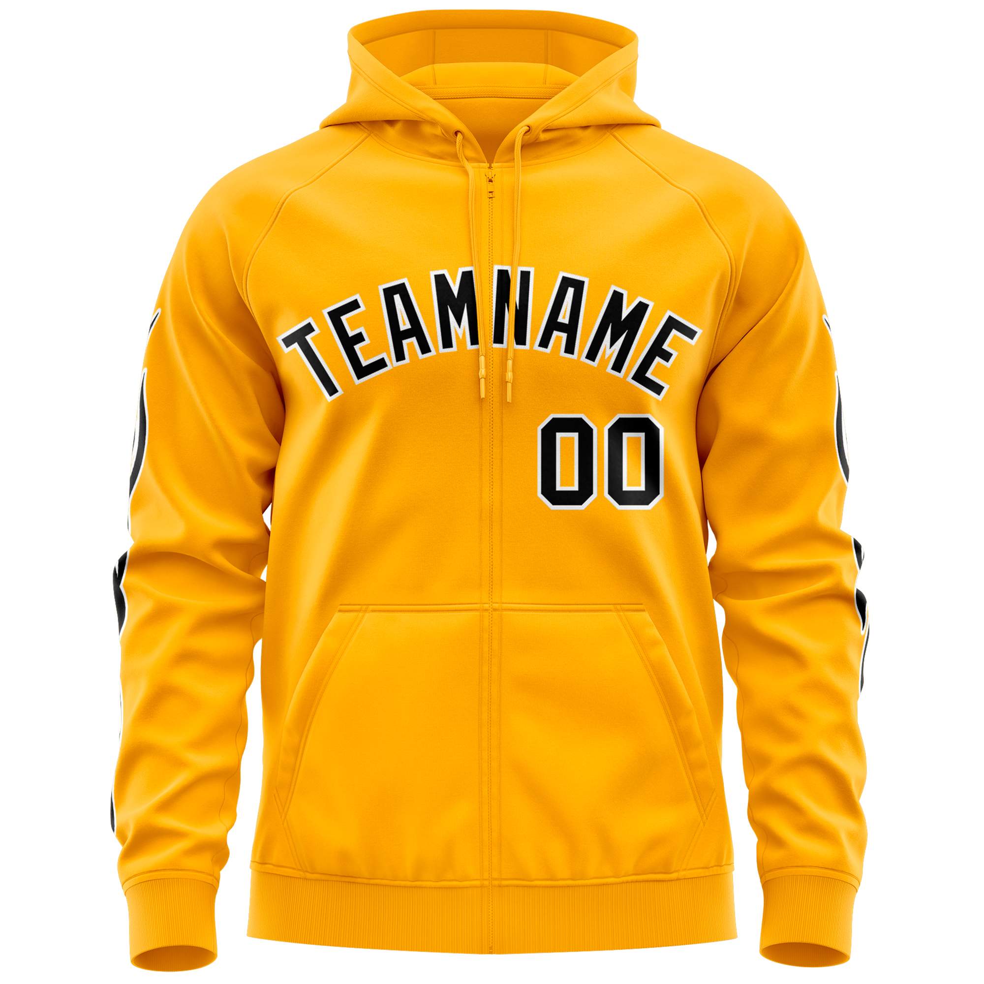 Custom Stitched Gold Black Sports Full-Zip Sweatshirt Hoodie with Flame