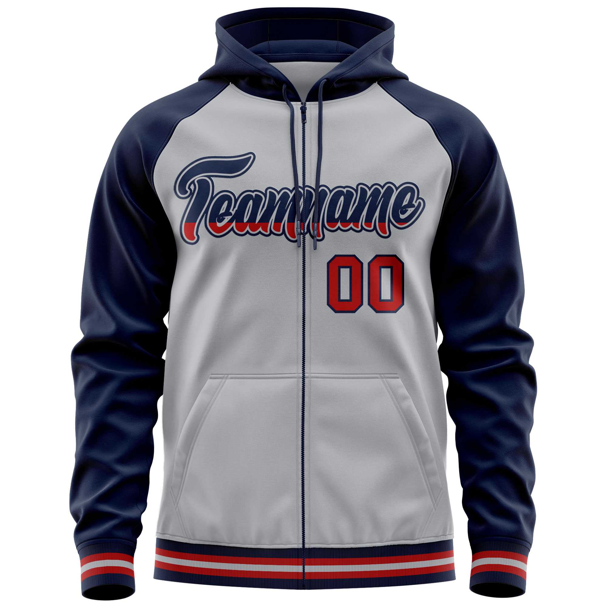 Custom Stitched Gray Navy Raglan Sleeves Sports Full-Zip Sweatshirt Hoodie