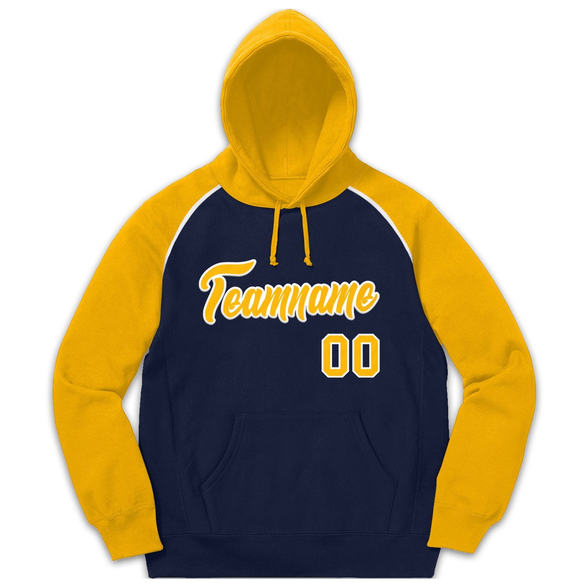 Custom Stitched Sportwear Navy Gold-White Raglan Sleeves Pullover Hoodie