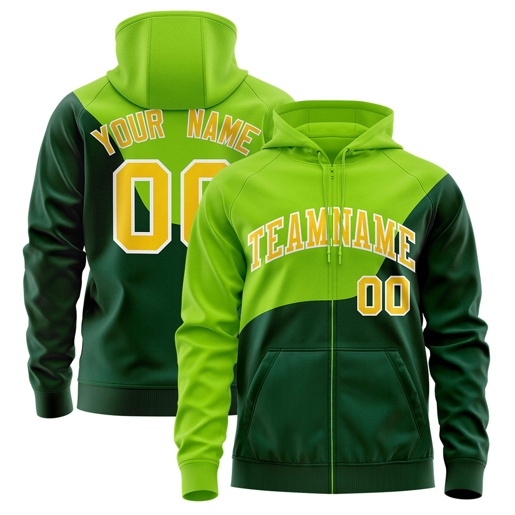 Custom Neon Green Green Color Block Varsity Full-Zip Letterman Wave Jacket Hoodie