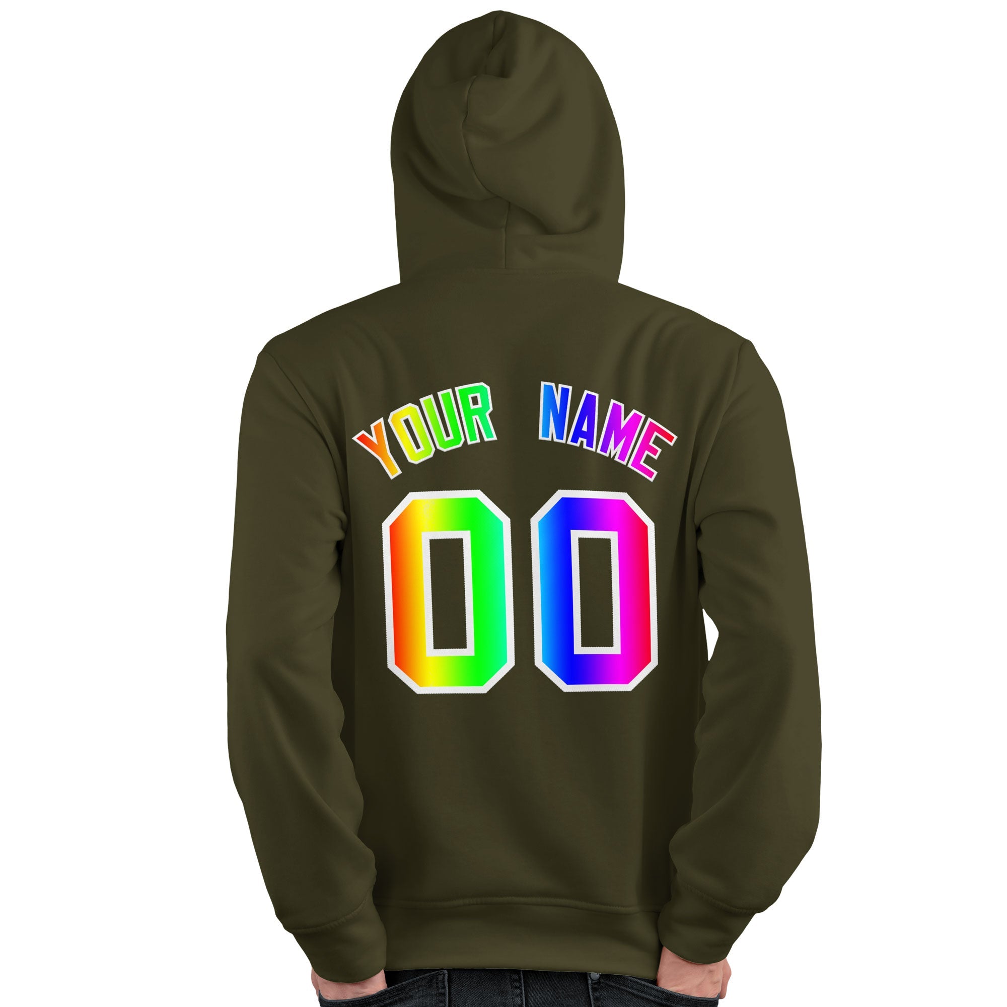 Custom Olive Personalized Rainbow Color Font Team Pullover Sweatshirt Hoodie