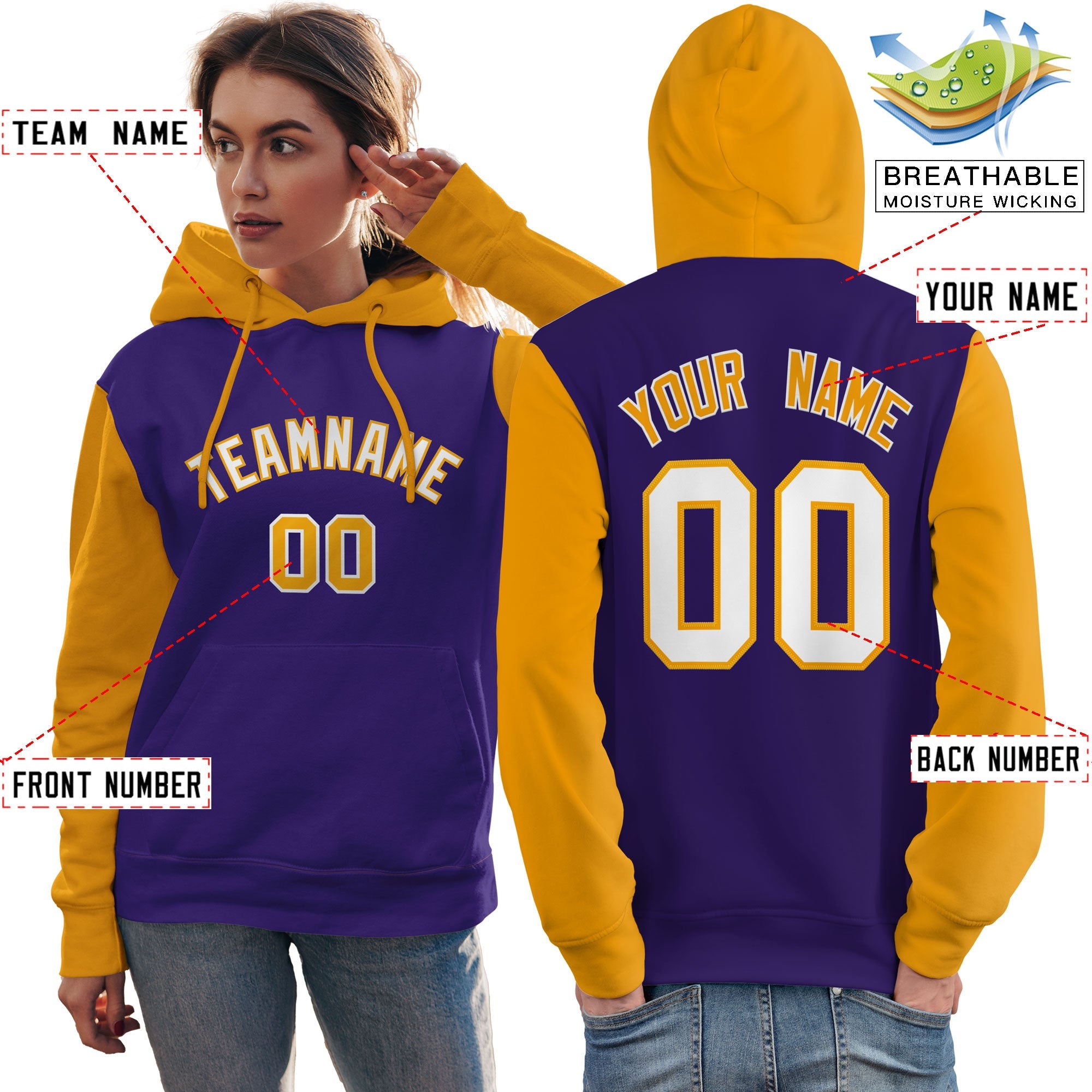 Custom Purple White-Gold Raglan Sleeves Pullover Personalized Team Sweatshirt Hoodie
