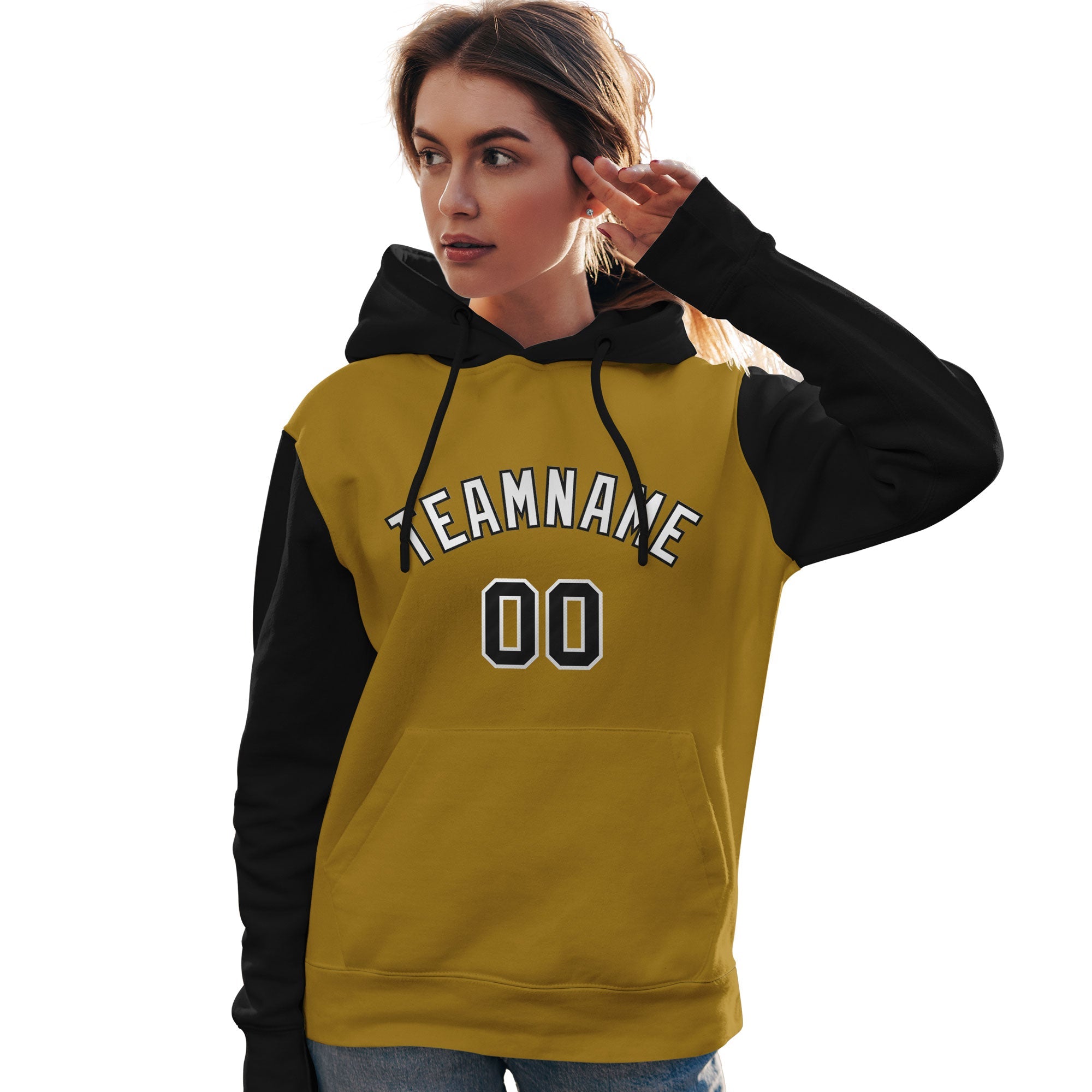 Custom Old Gold White-Black Raglan Sleeves Pullover Personalized Team Sweatshirt Hoodie
