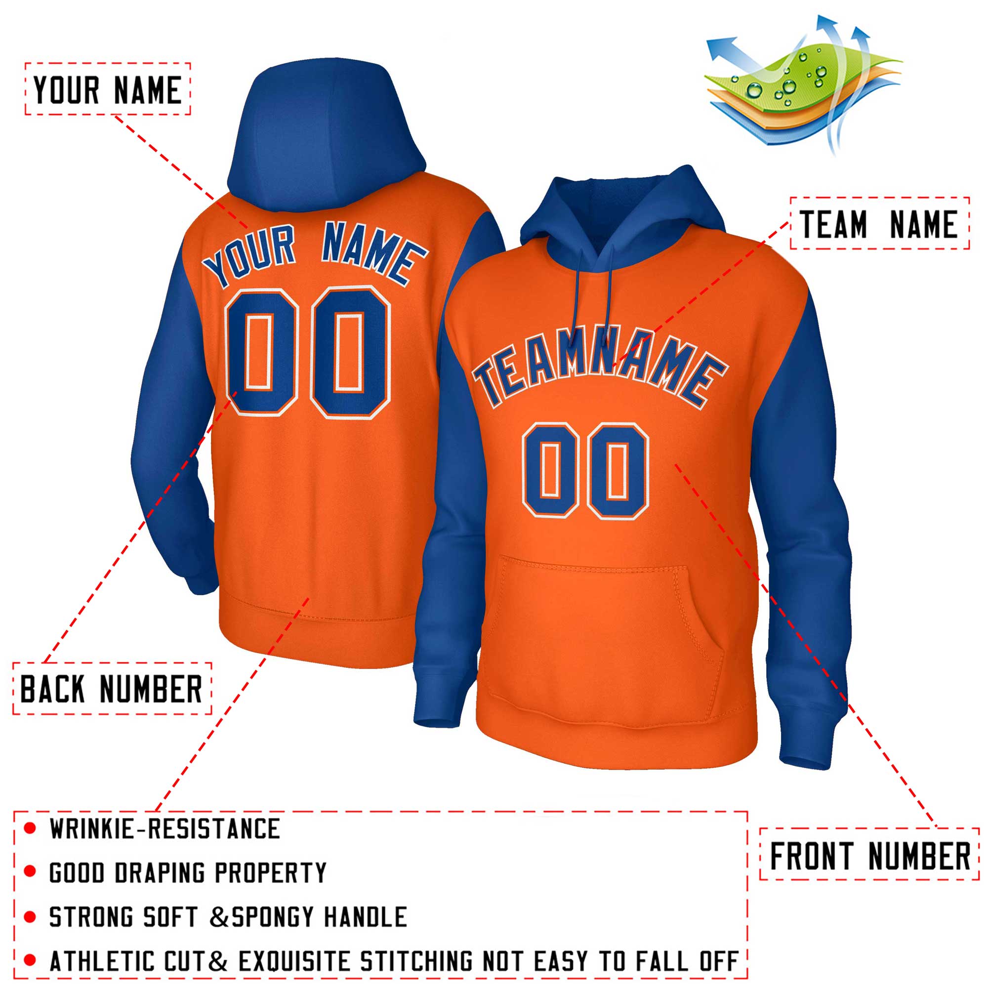 Custom Personalized Pullover Stitched Hoodies with Raglan Sleeves