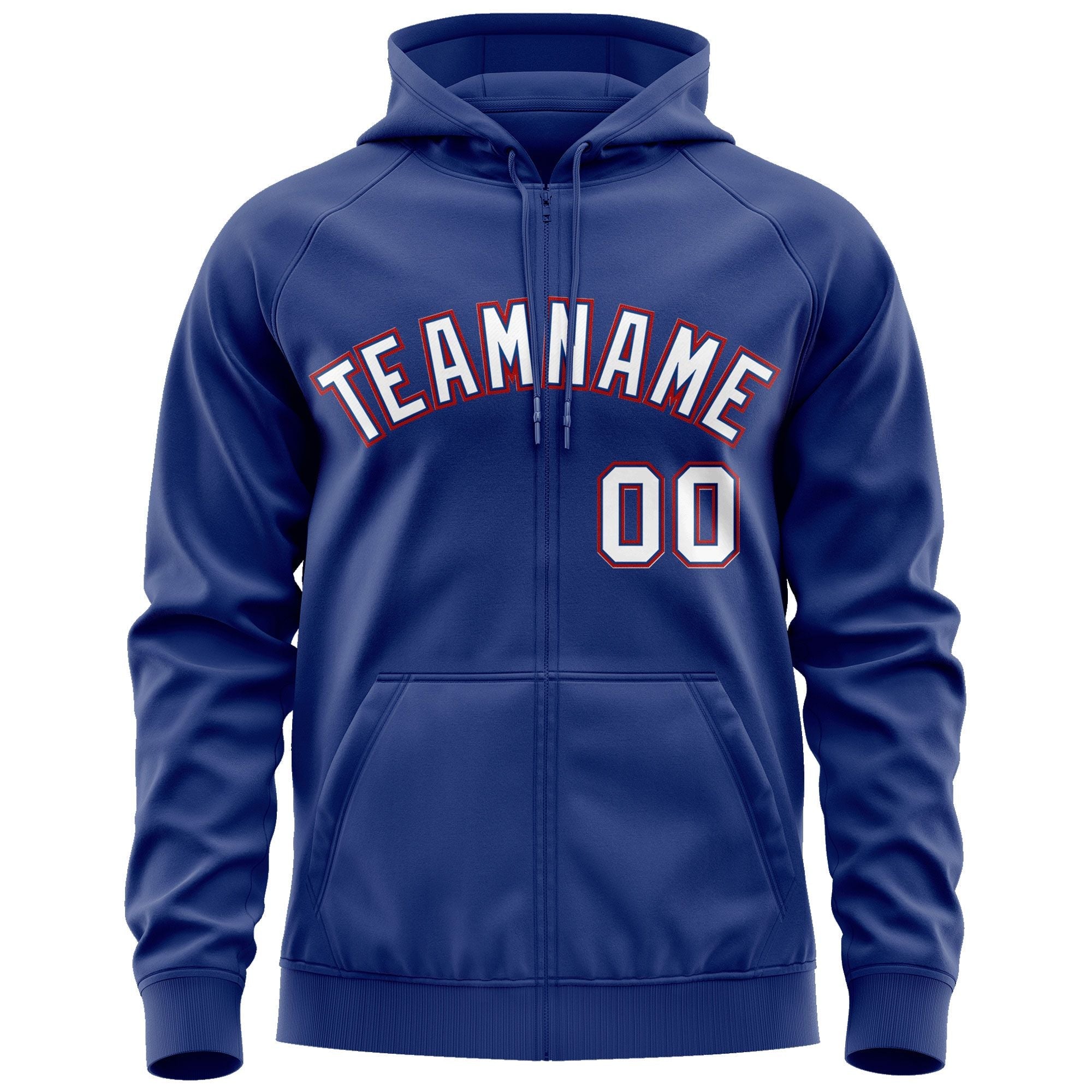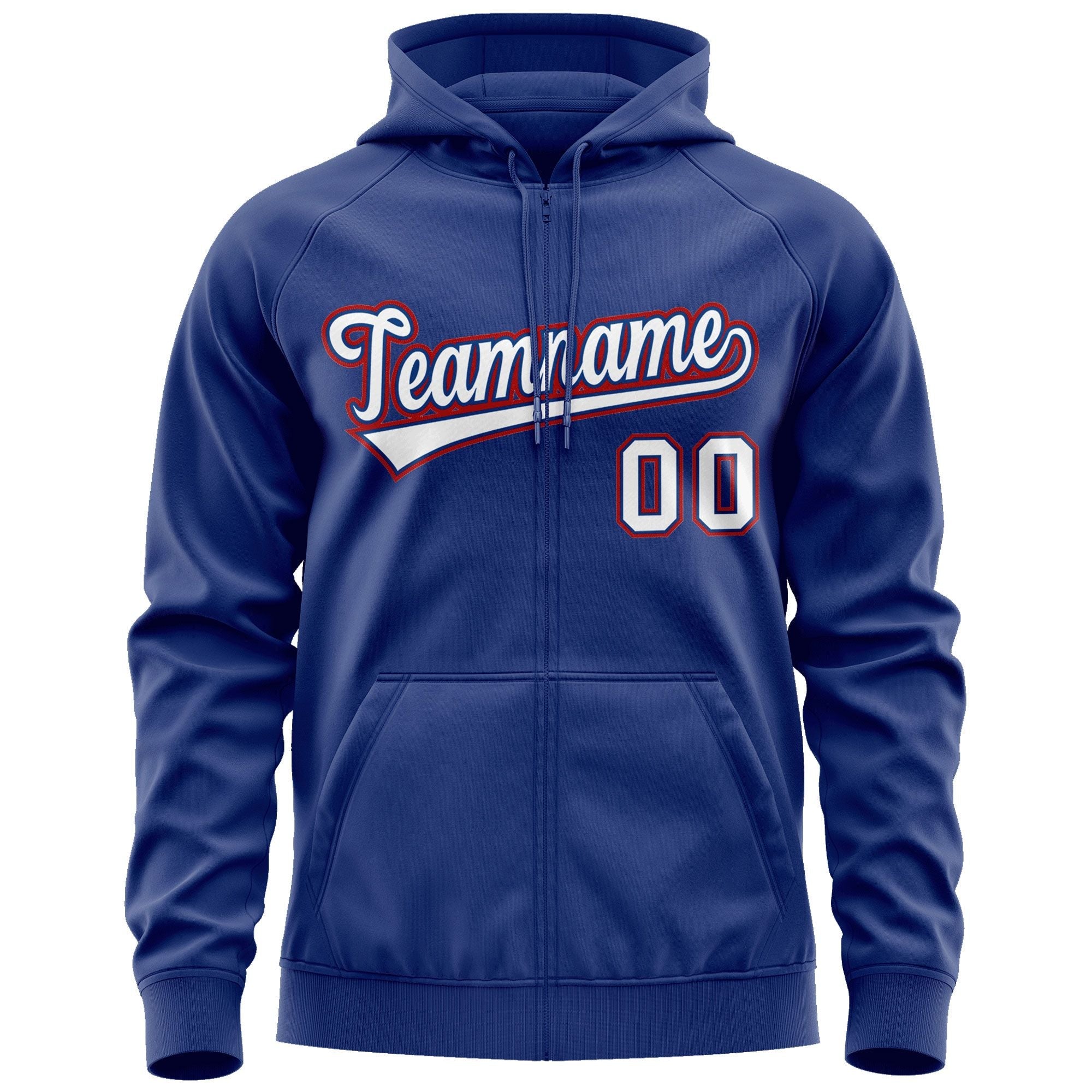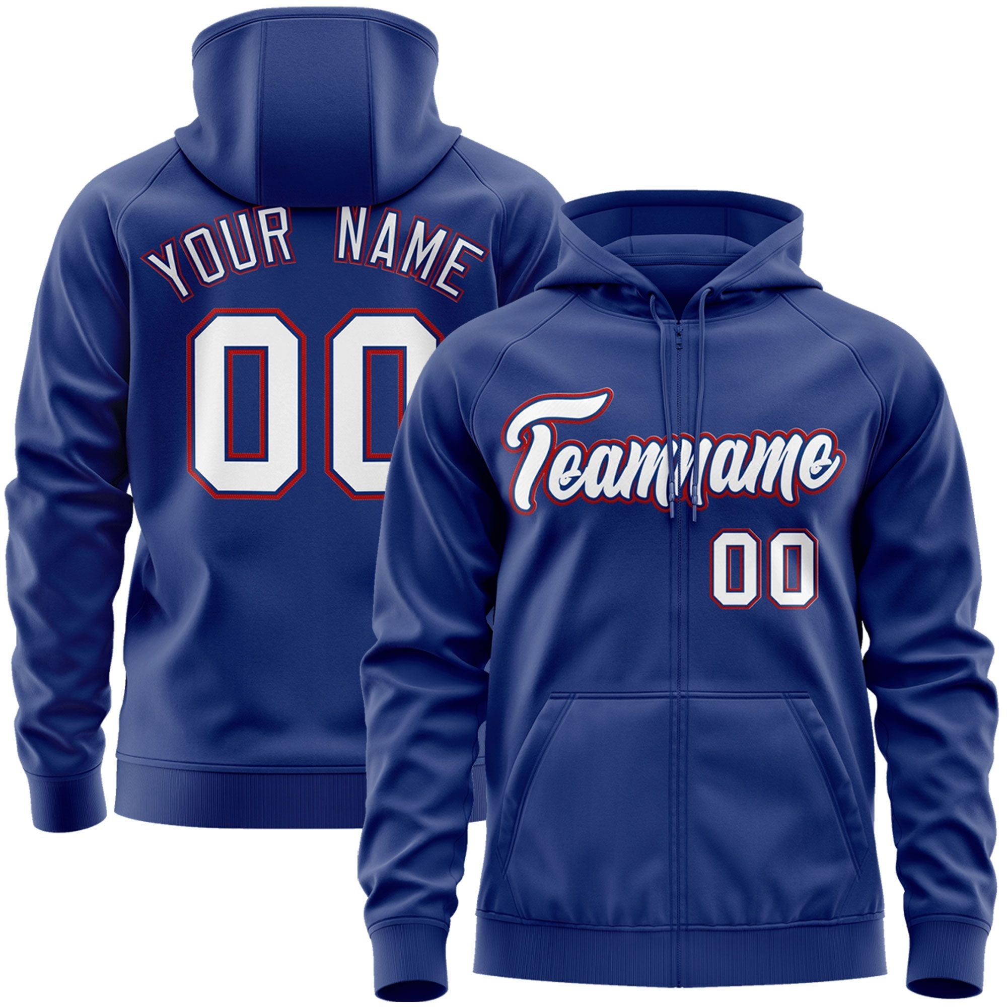 Custom Stitched Royal White-Red Sports Full-Zip Sweatshirt Hoodie