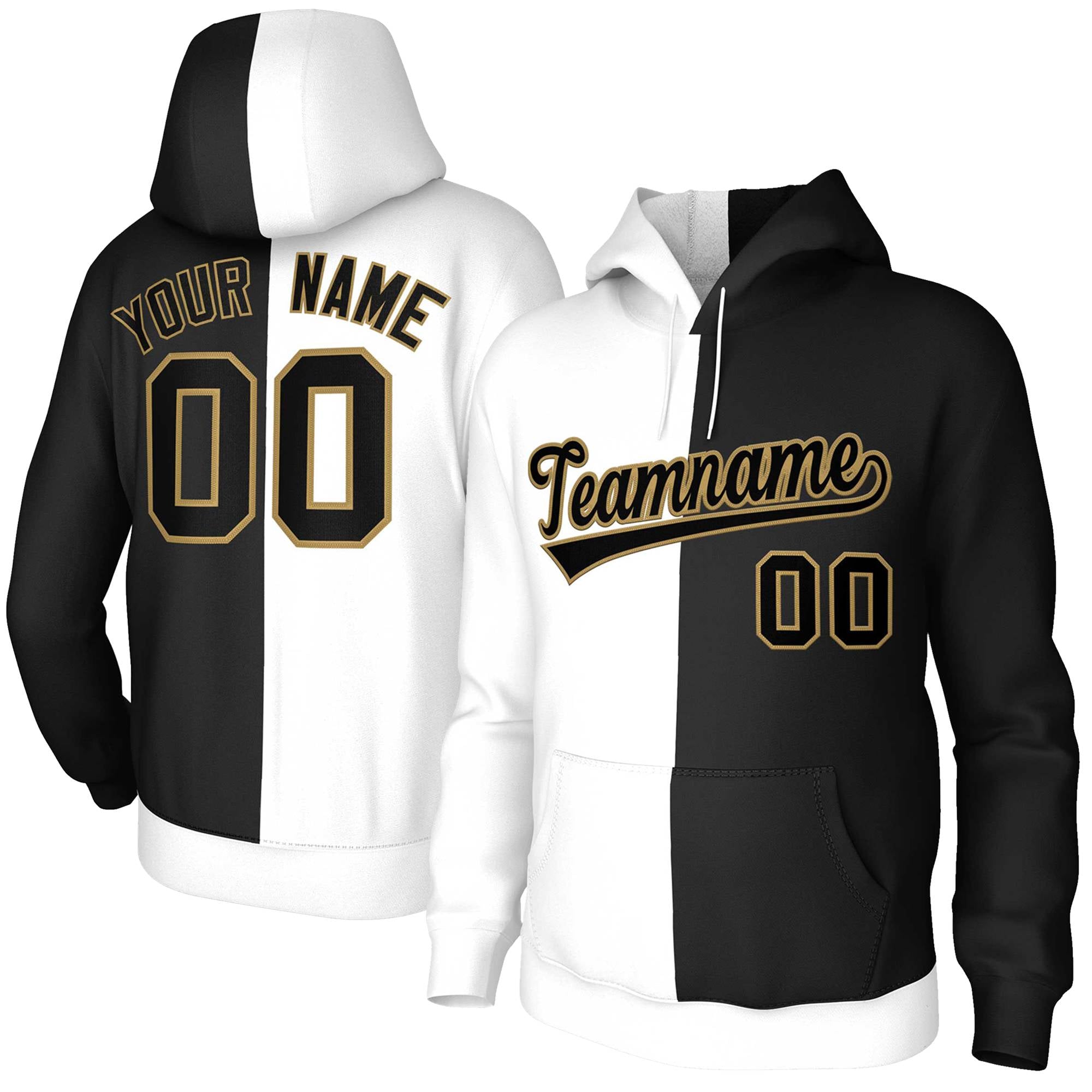 Custom White Black-Old Gold Split Fashion Stitched Sportwear Pullover Hoodie