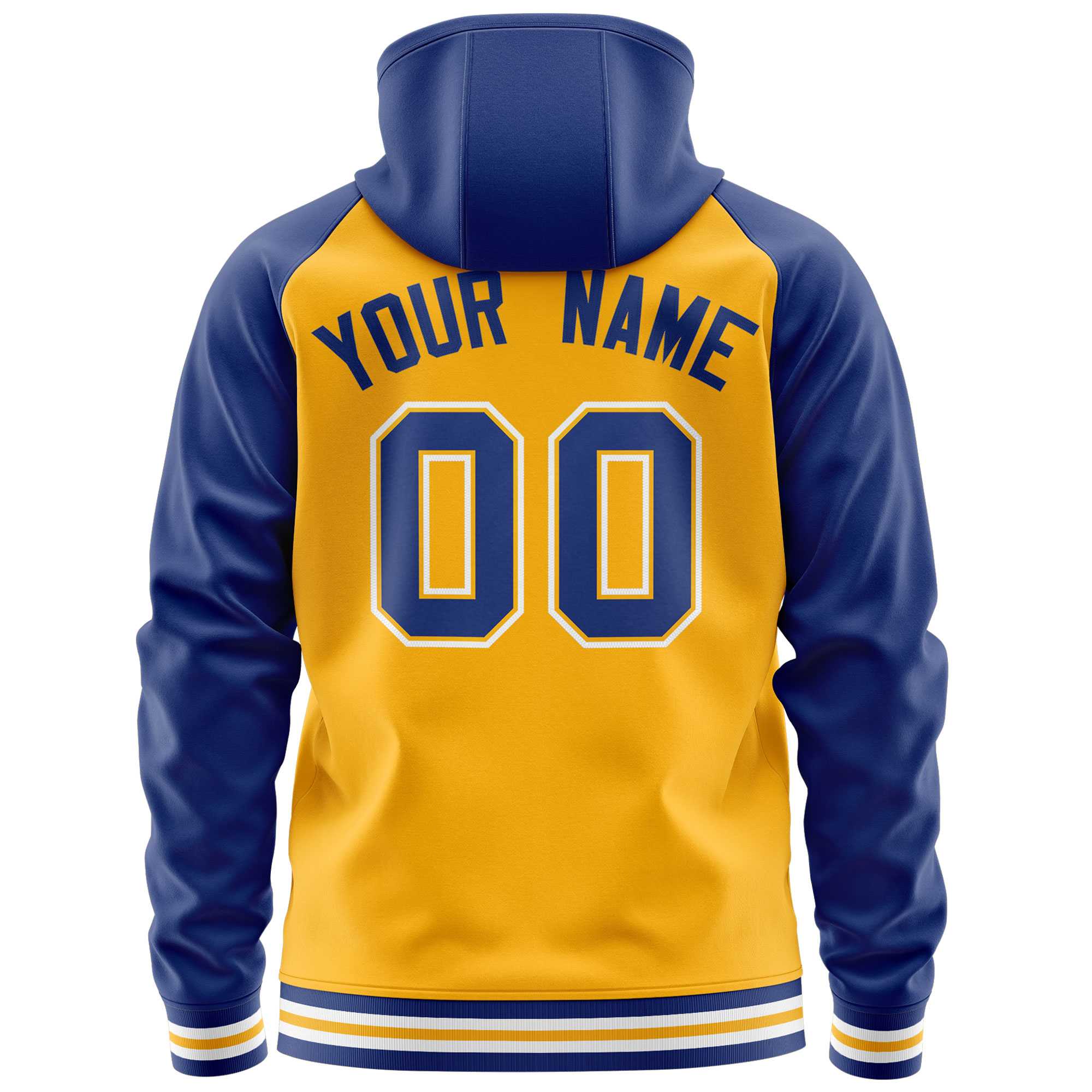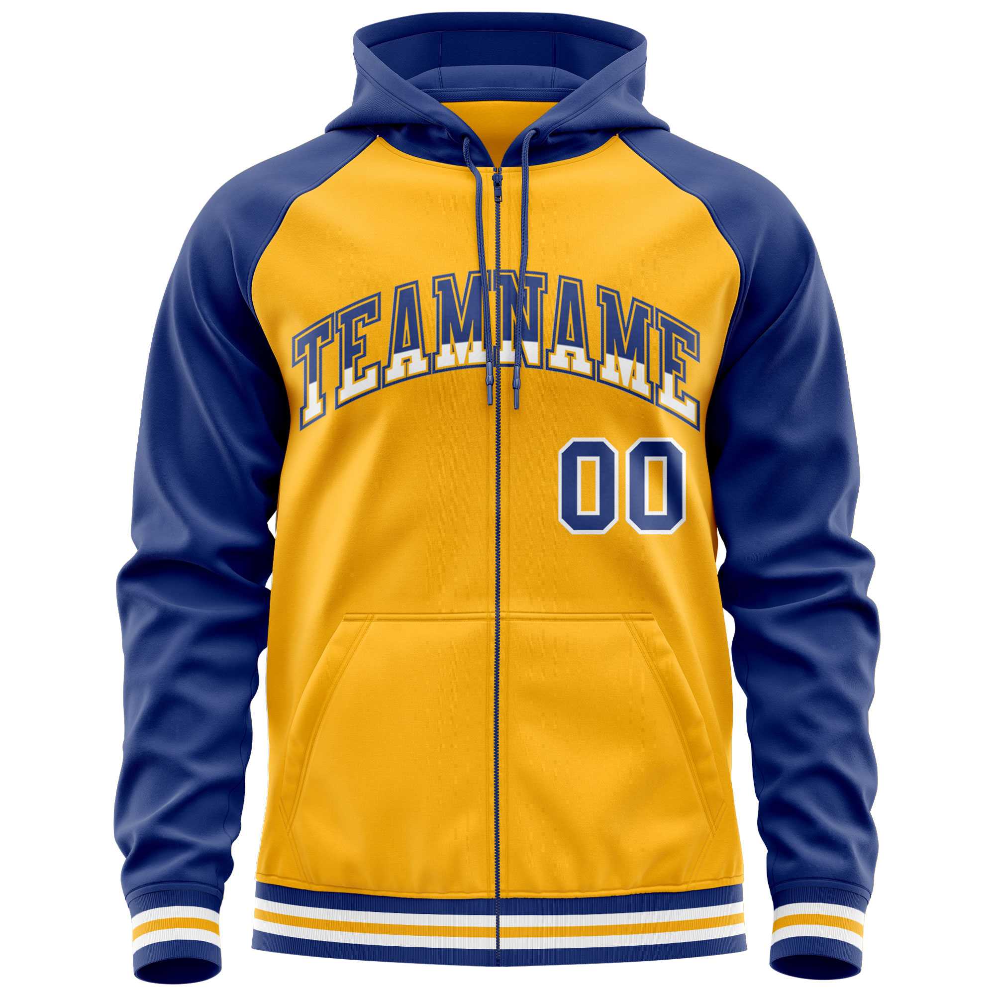 Custom Stitched Yellow Royal Raglan Sleeves Sports Full-Zip Sweatshirt Hoodie