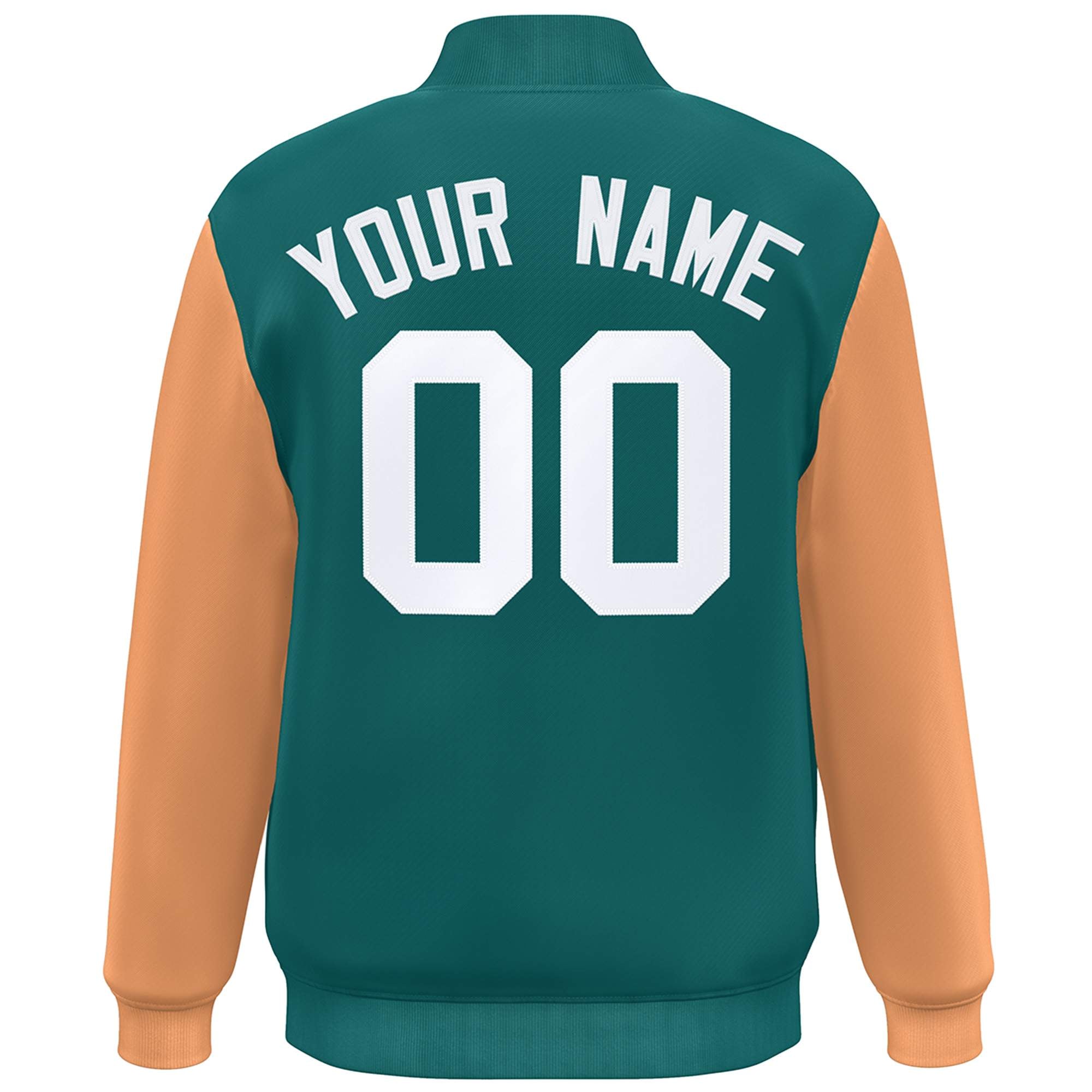 Custom Aqua Orange-White Color Block Varsity Full-Snap Bomber Jacket