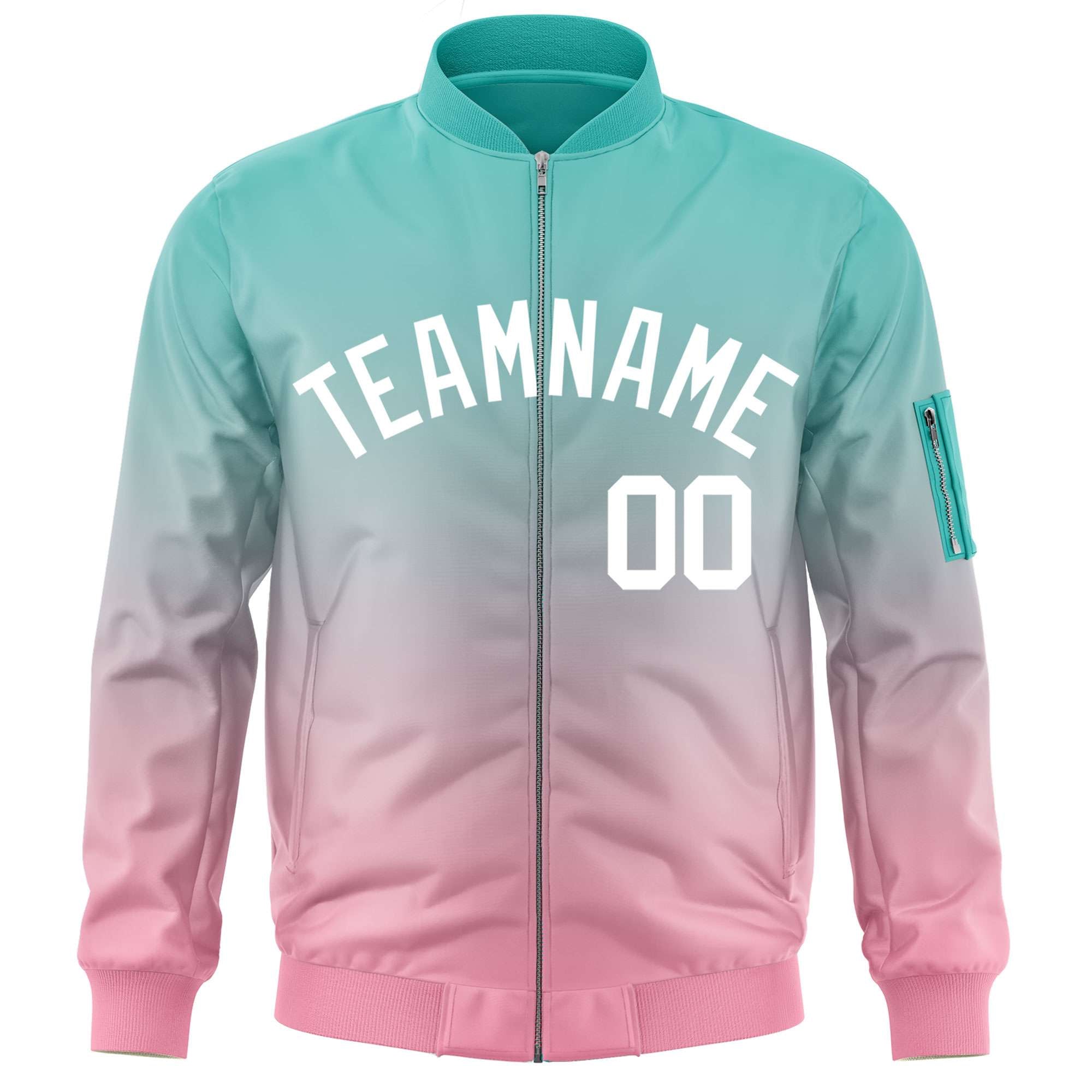 Custom Aqua Pink-White Varsity Full-Zip Gradient Fashion Letterman Bomber Jacket