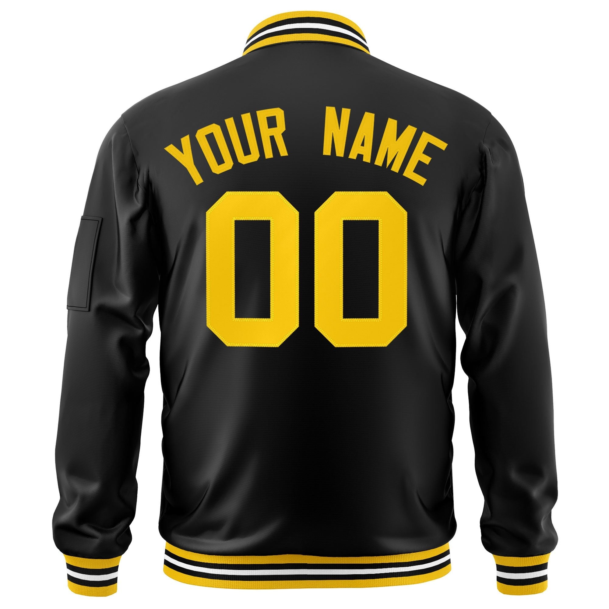 Custom Black Gold Varsity Full-Zip Letterman Bomber Jacket