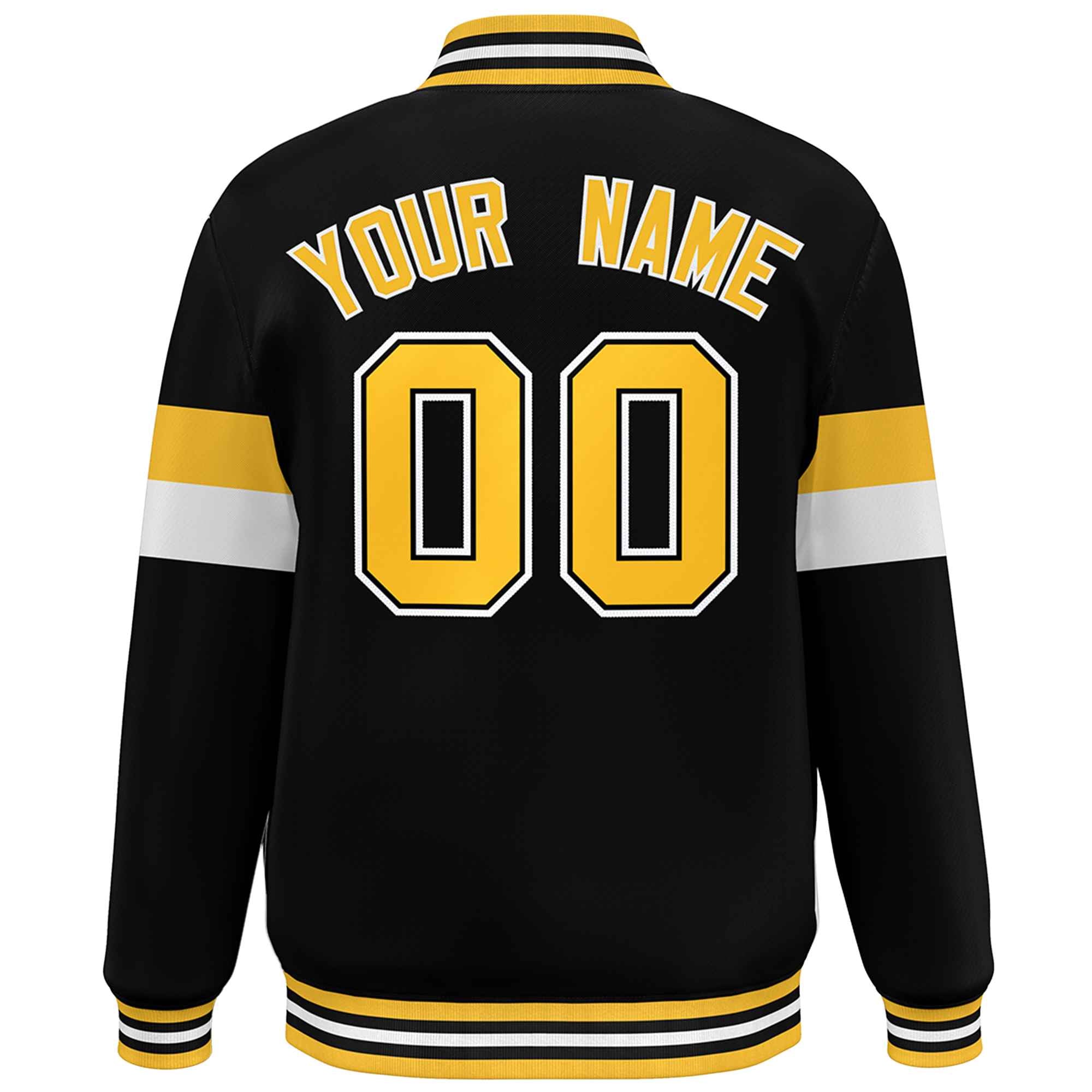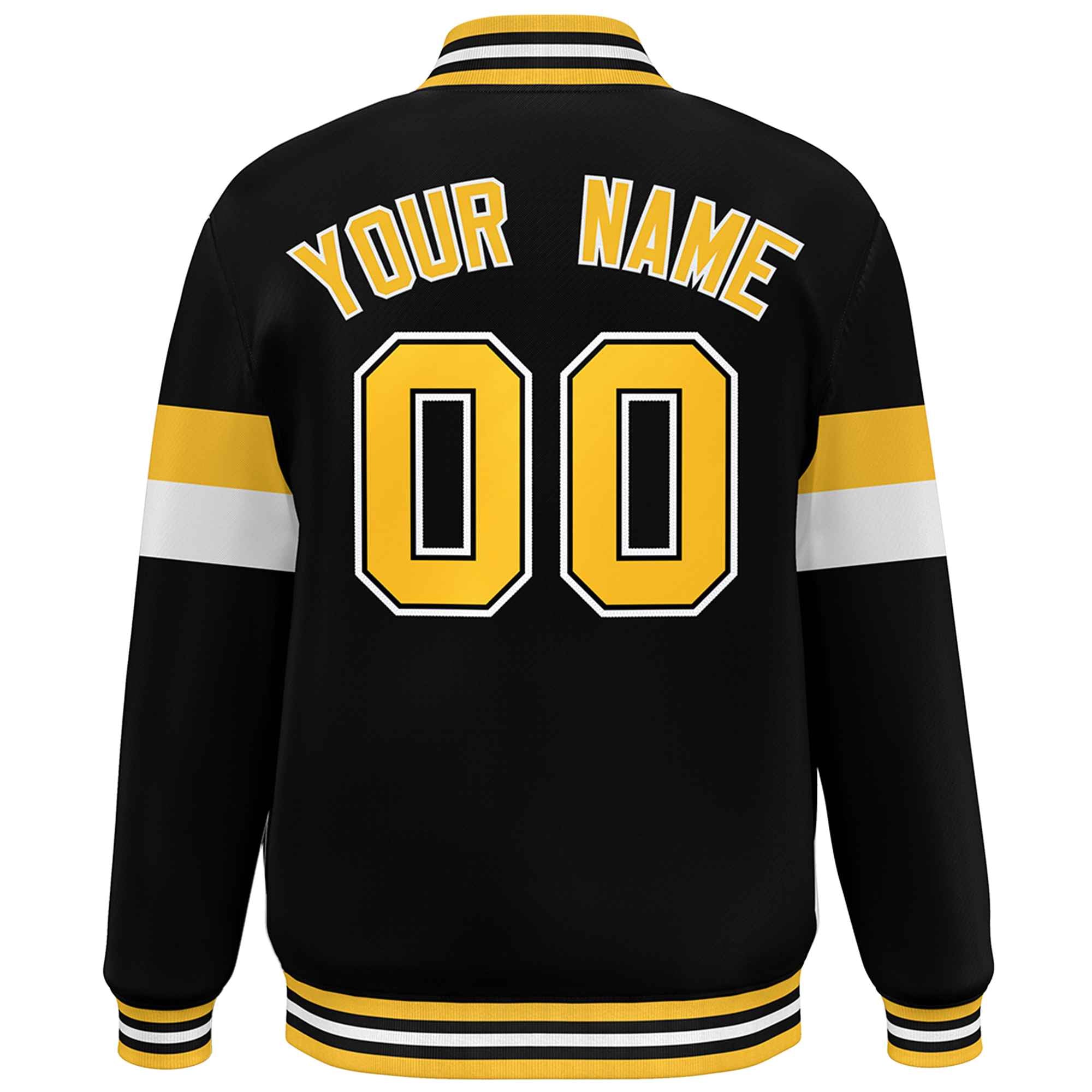 Custom Black Gold-White Color Block Bomber Varsity Full-Snap Baseball Jacket