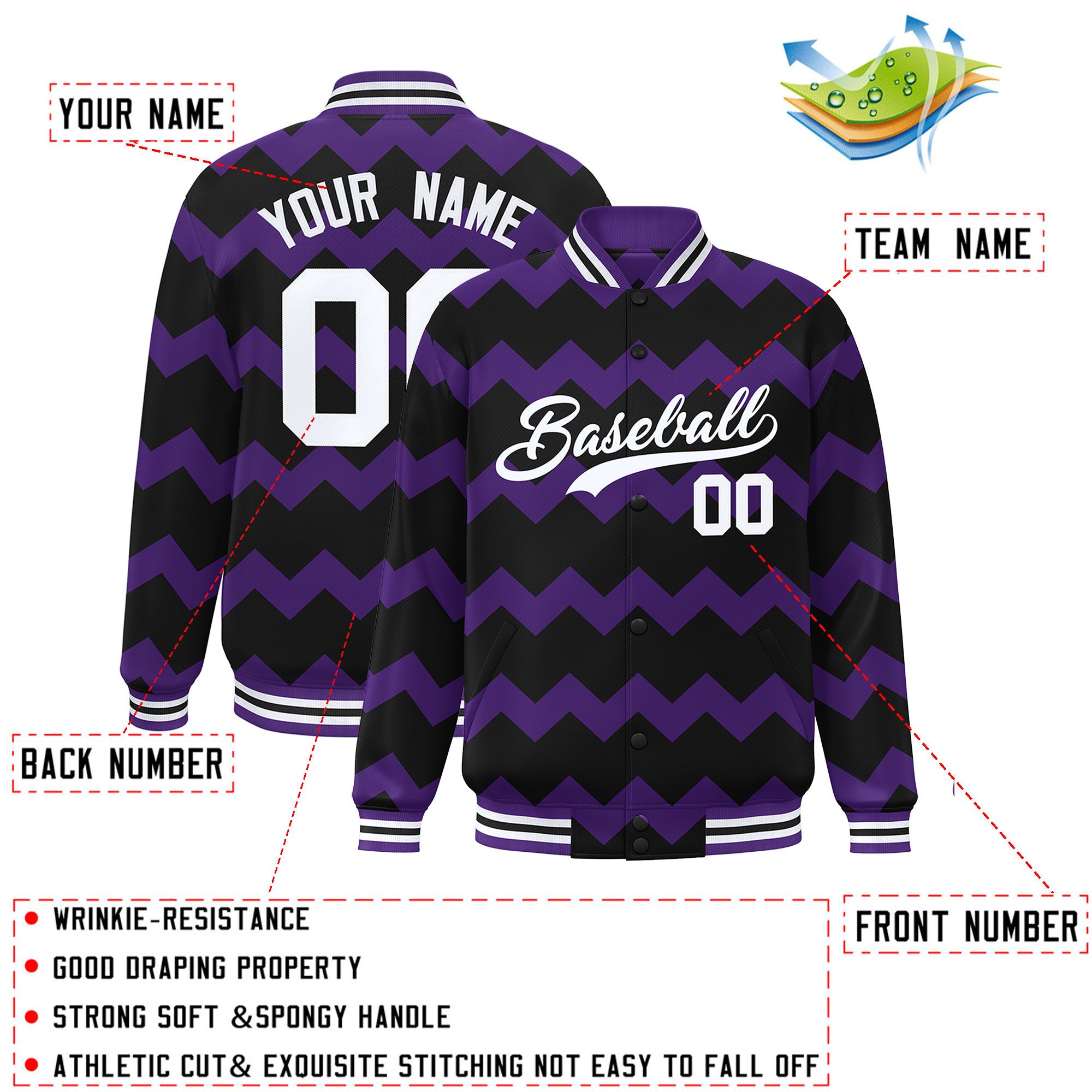 Custom Black Varsity Full-Snap Ripple Color Block Letterman Jacket