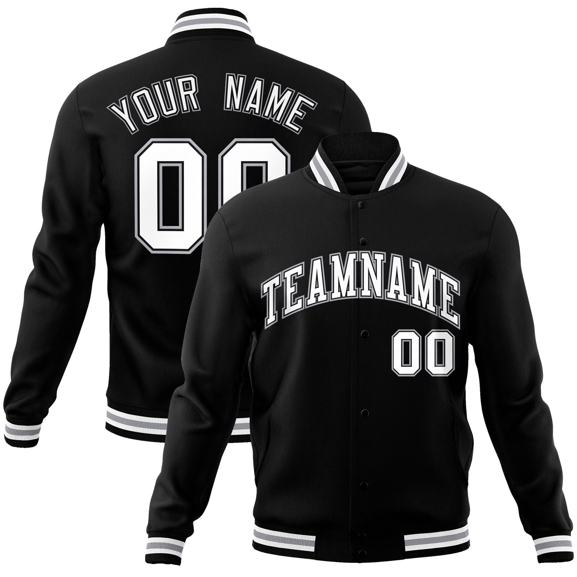 Custom Black White-Black Classic Style Varsity Full-Snap Letterman Jacket