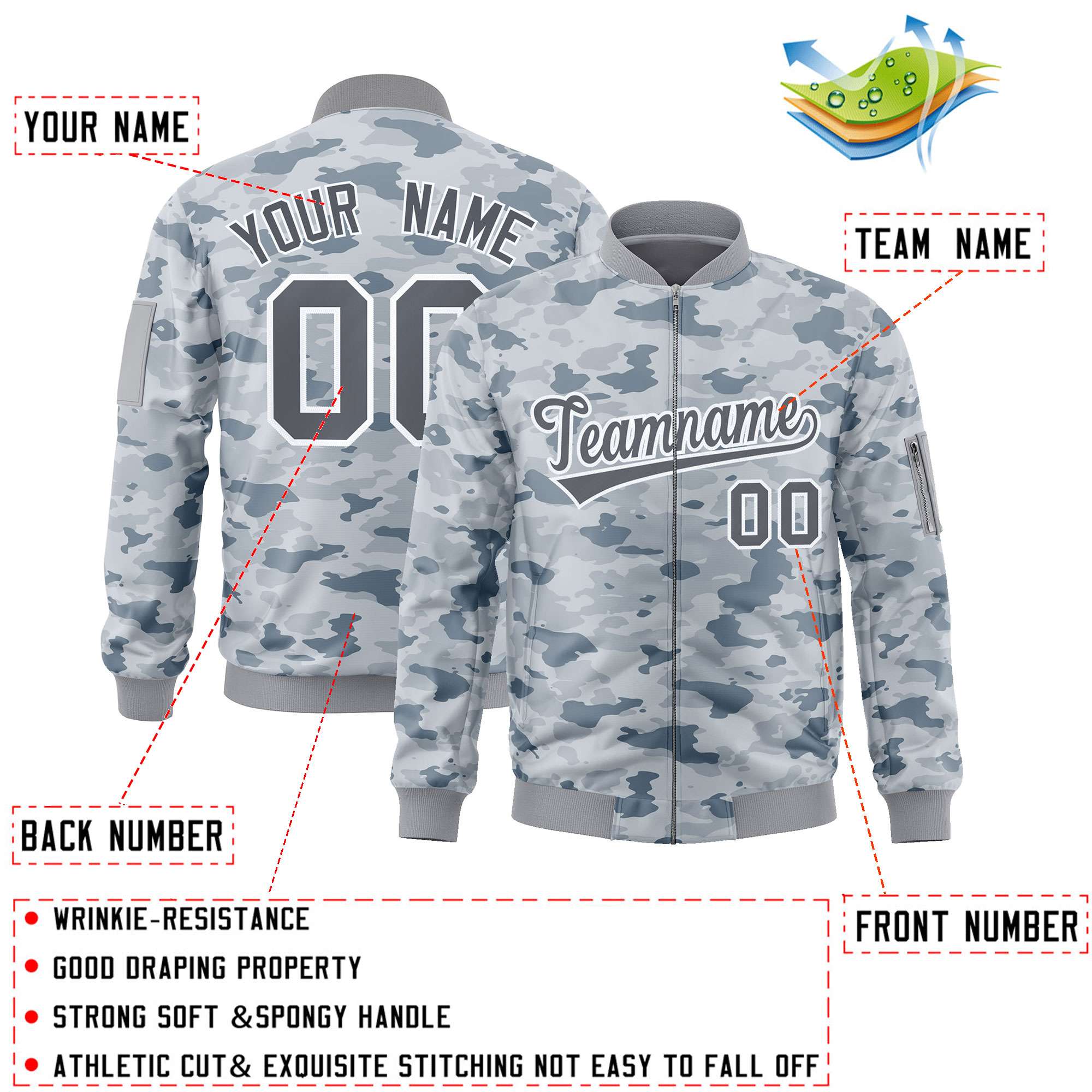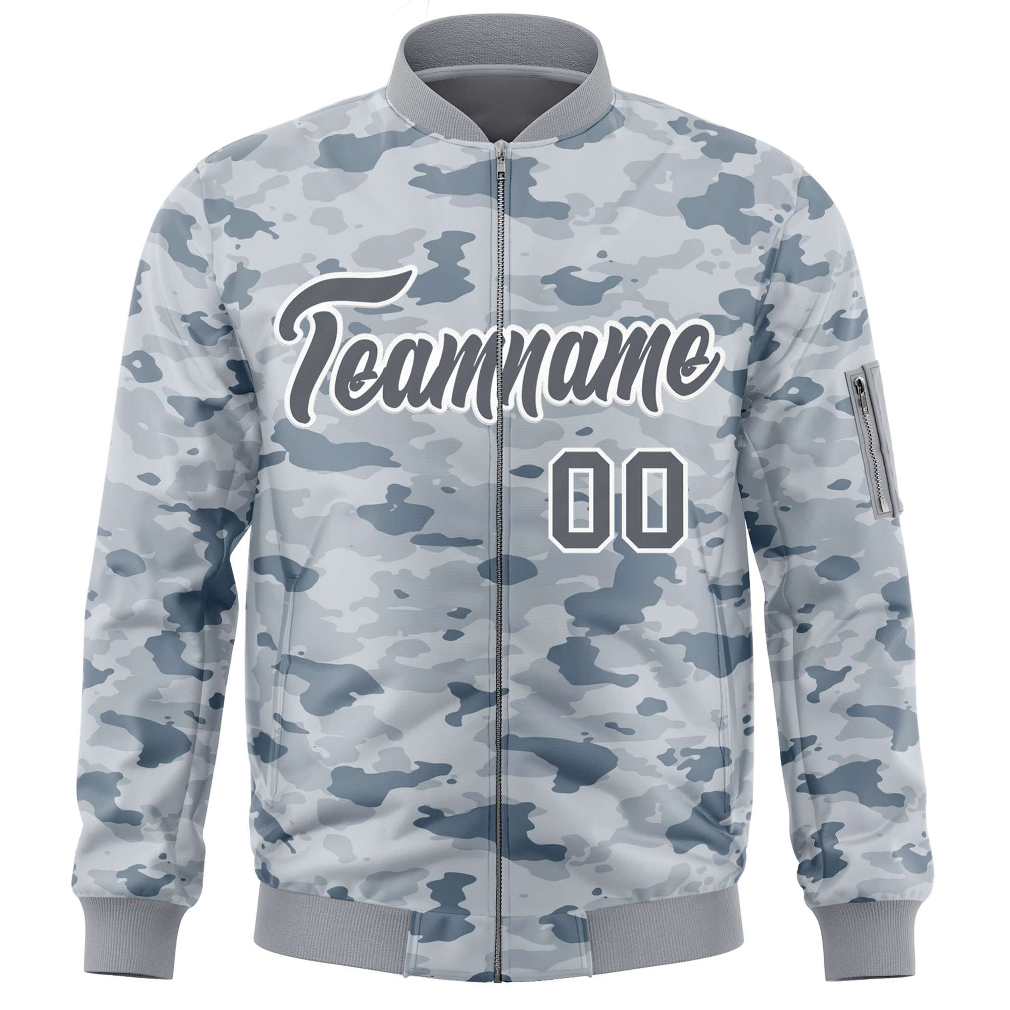 Custom Gray White Varsity Full-Zip Camo Letterman Bomber Jacket