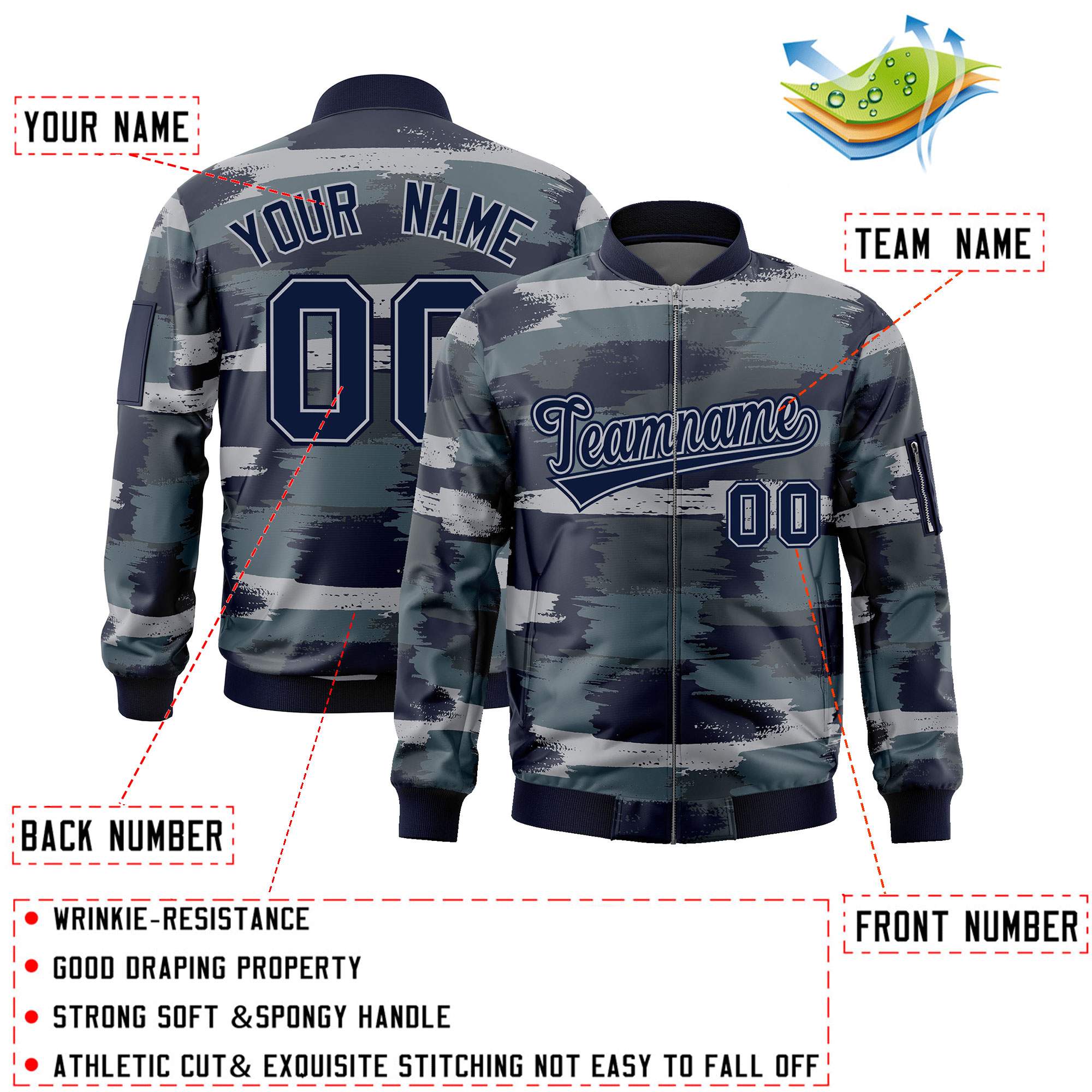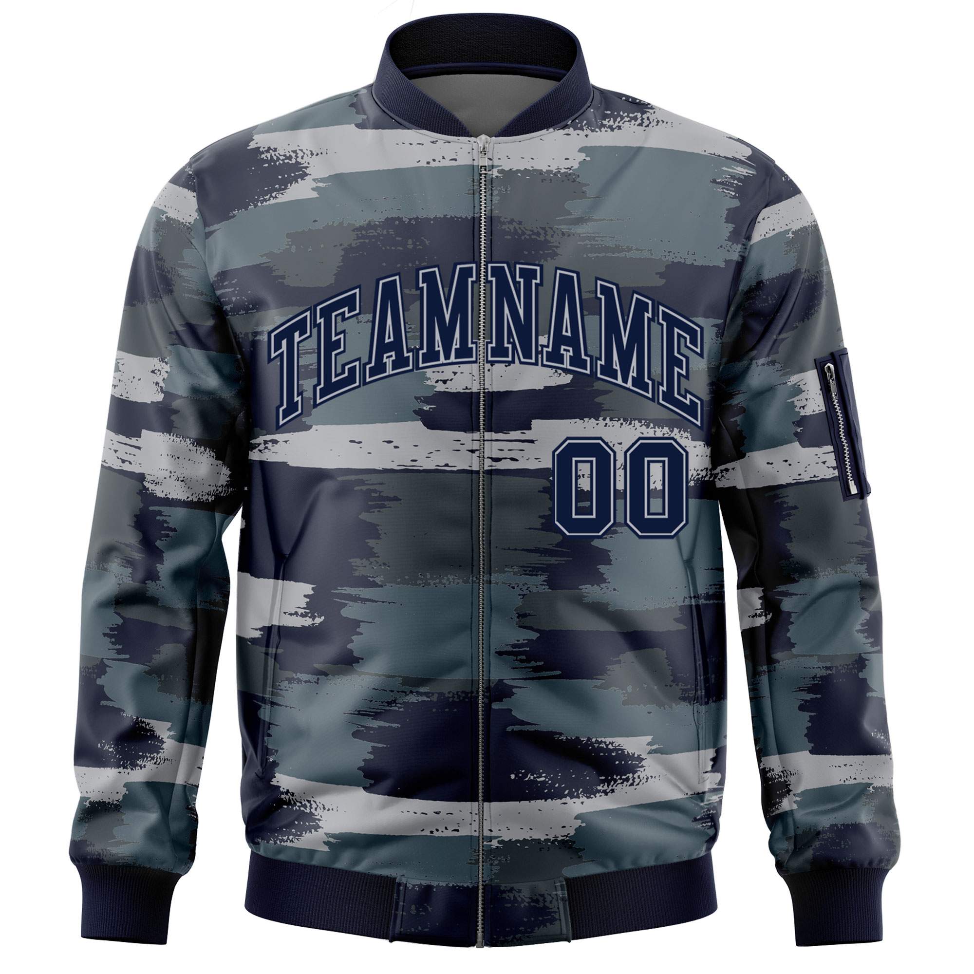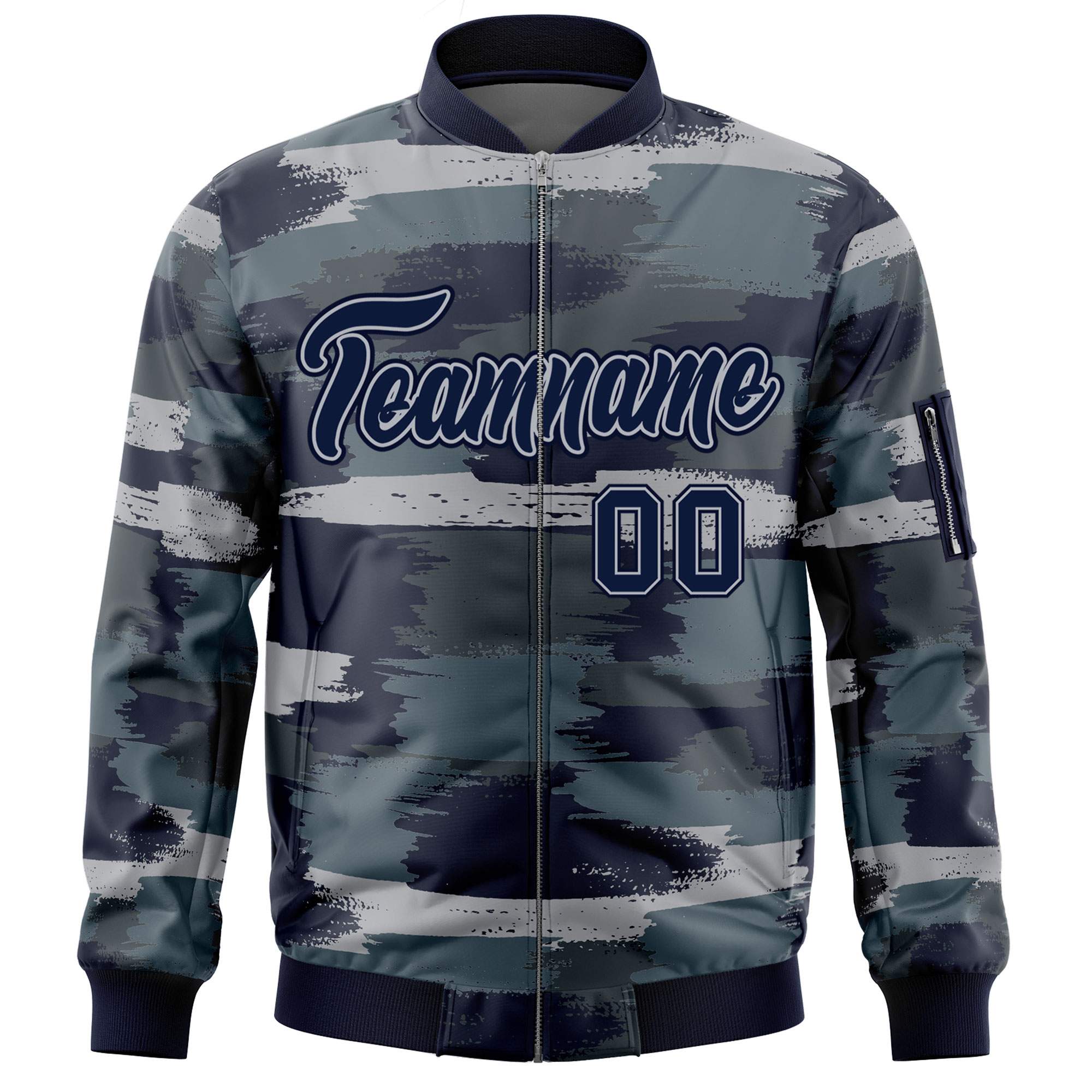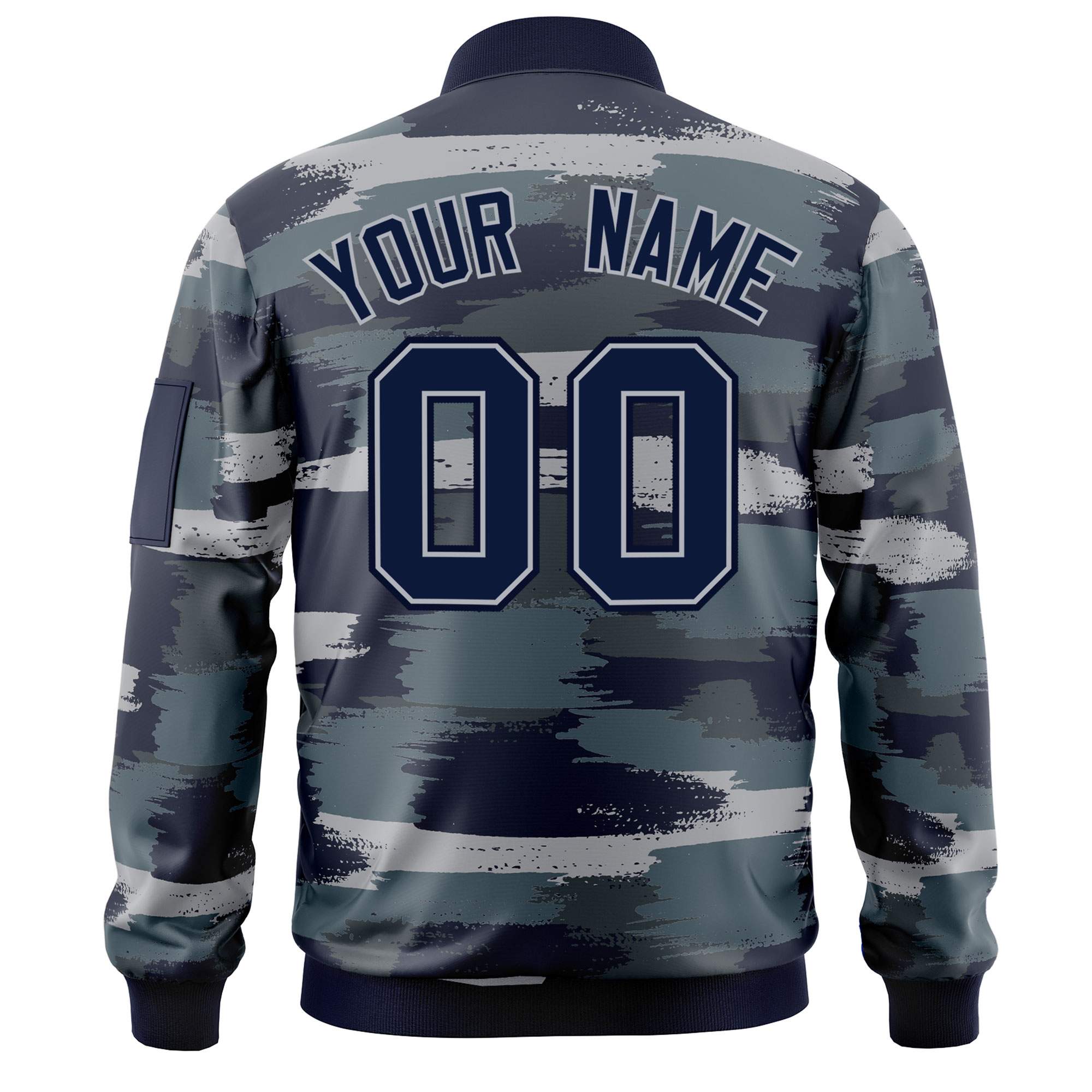Custom Navy Gray Varsity Full-Zip Camo Letterman Bomber Jacket