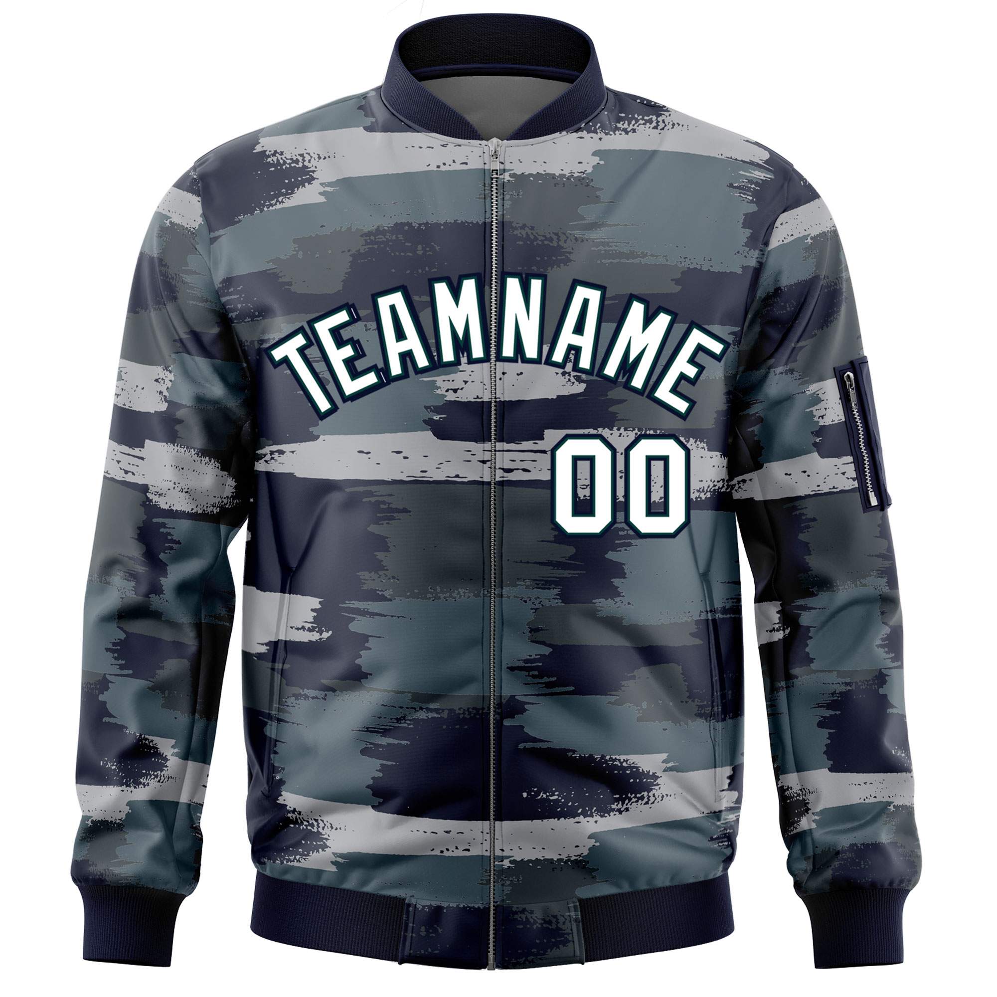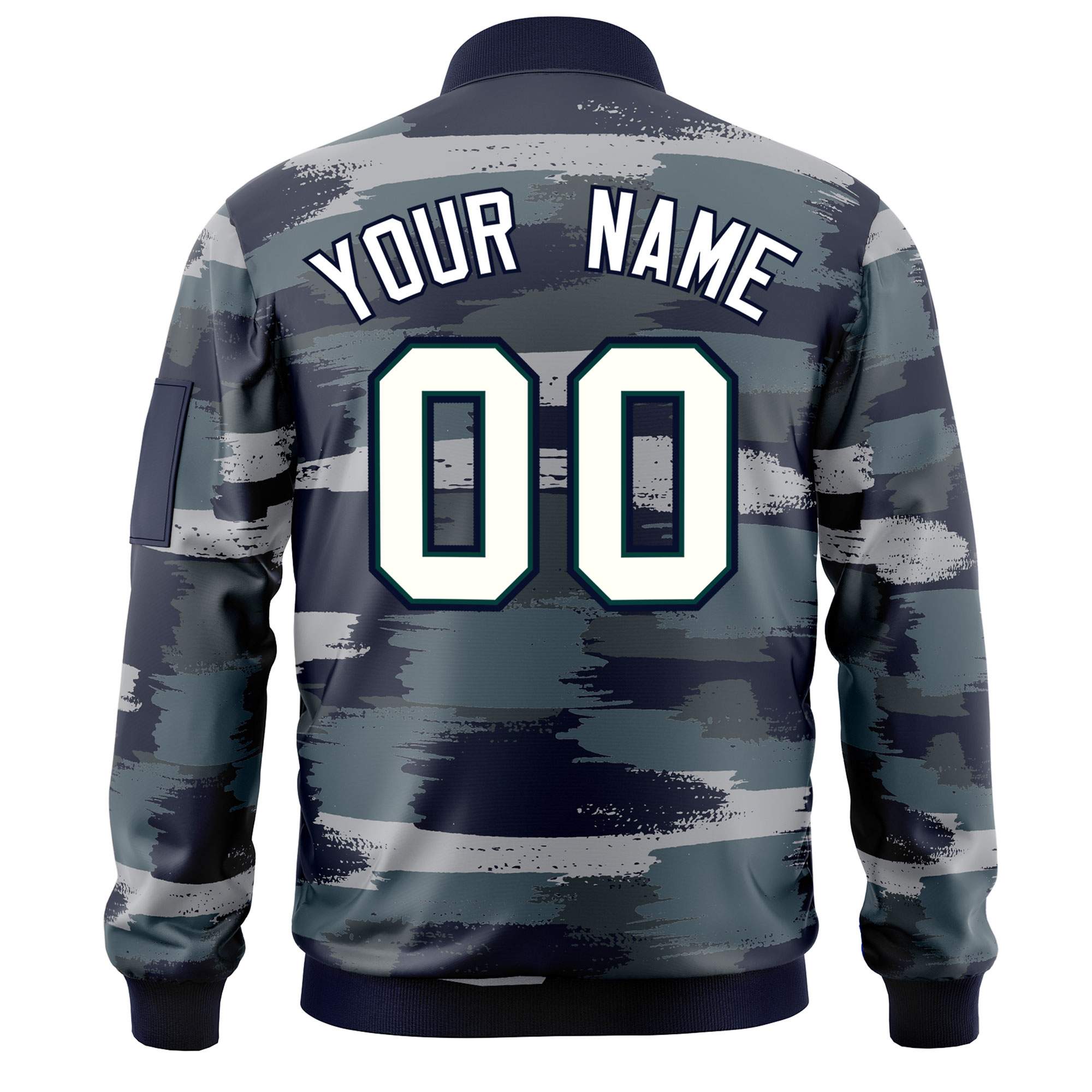 Custom White Black Varsity Full-Zip Camo Letterman Bomber Jacket