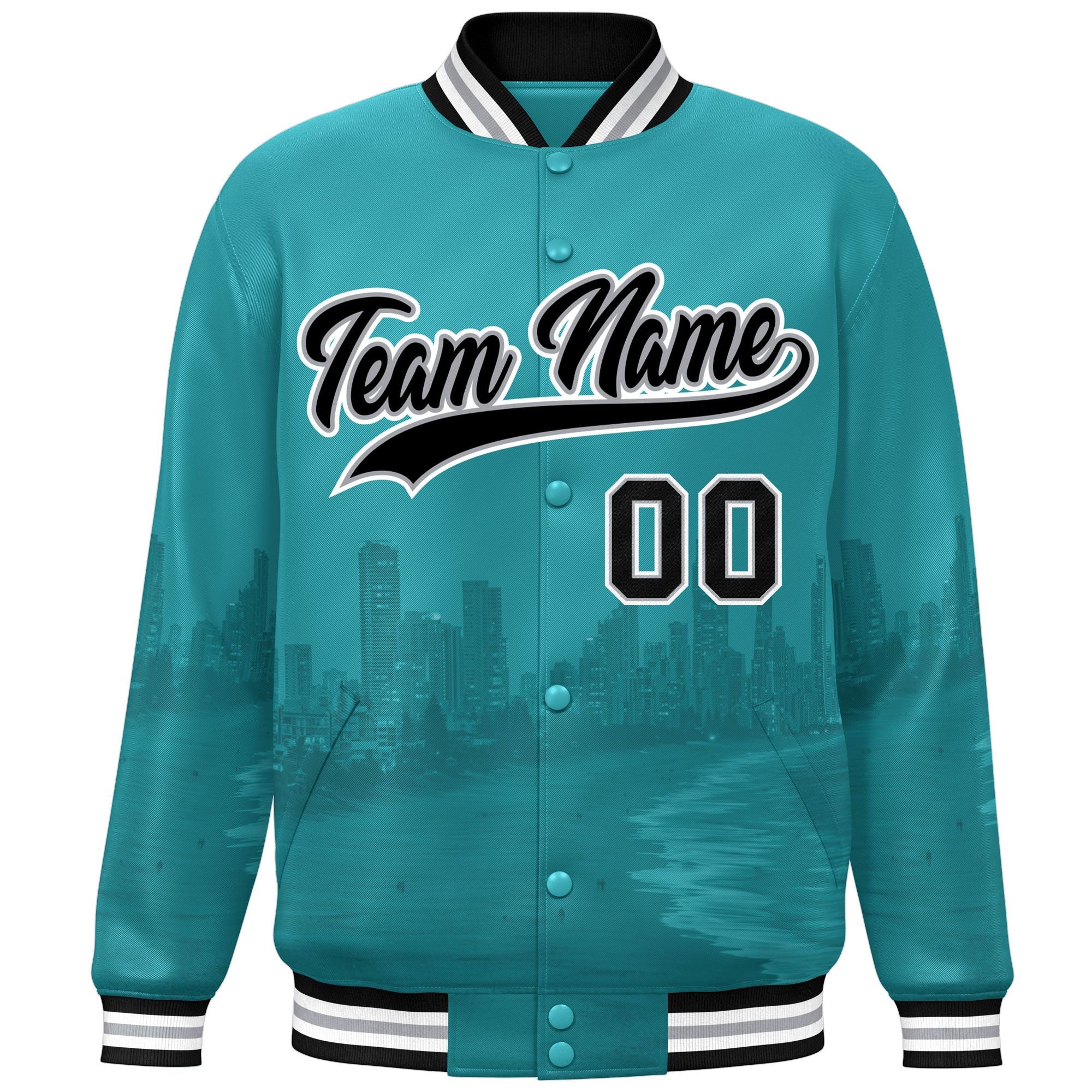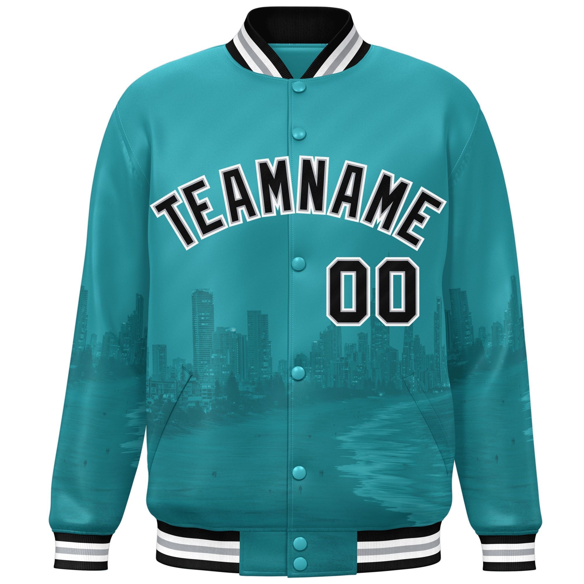 Custom Aqua Black-White Miami City Connect Track Varsity Full-Snap Jacket