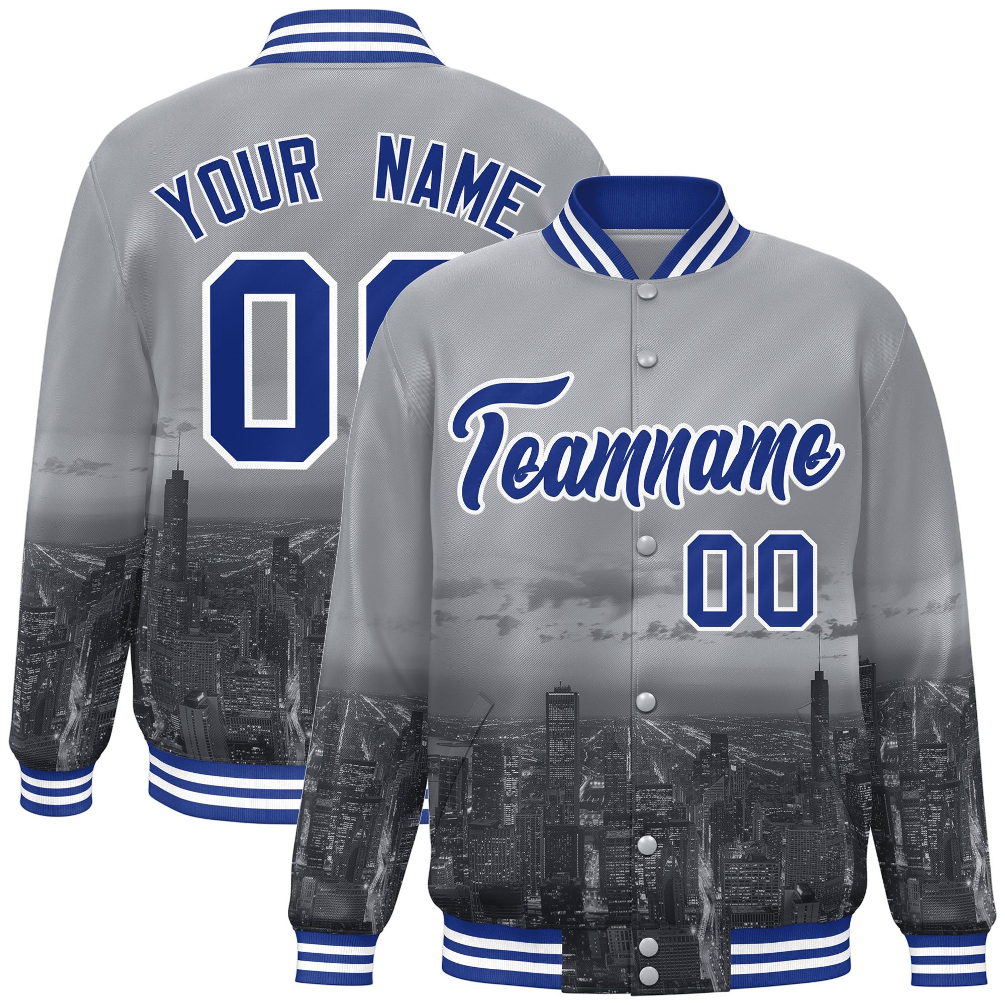 Custom Gray Royal-White Chicago City Connect Track Varsity Full-Snap Jacket