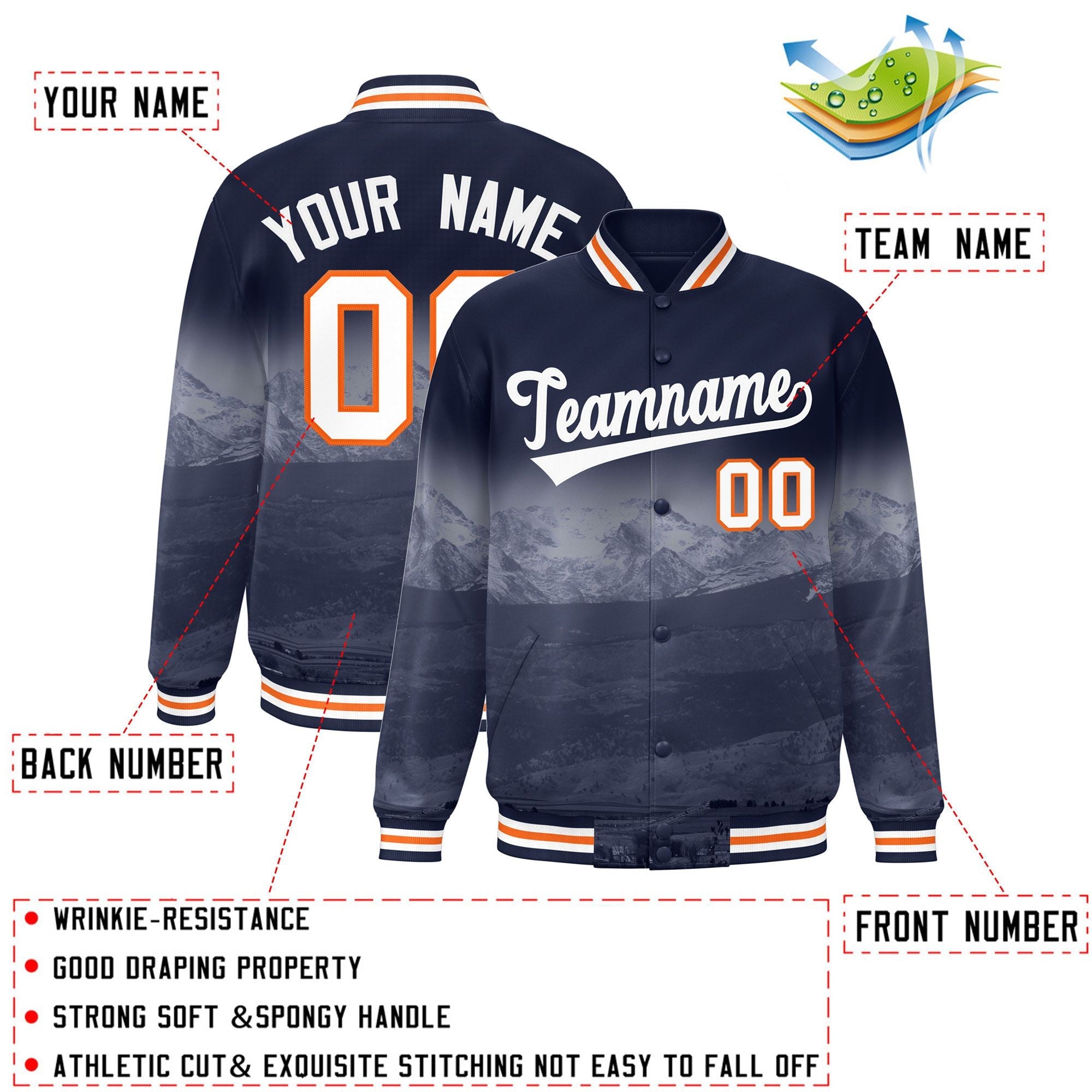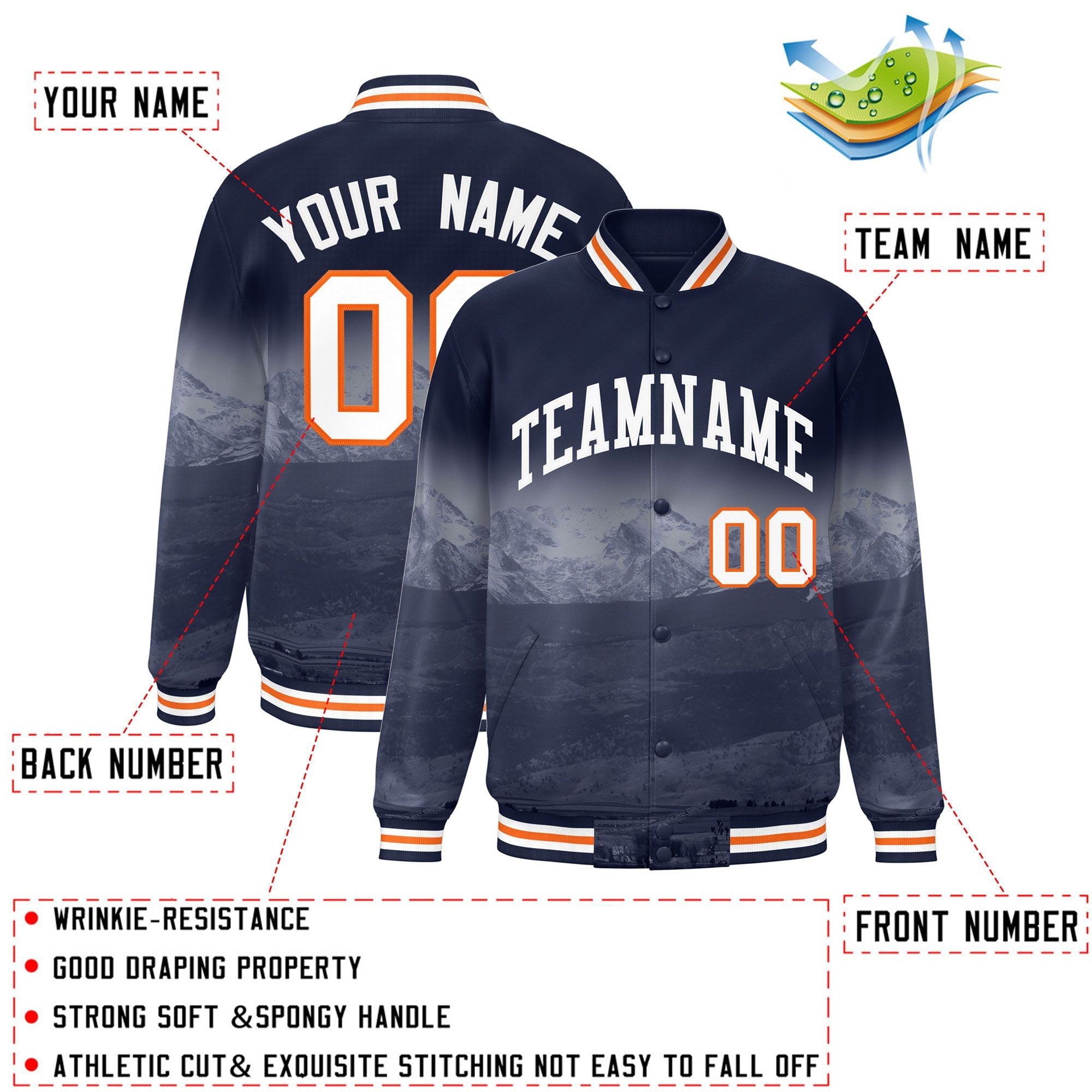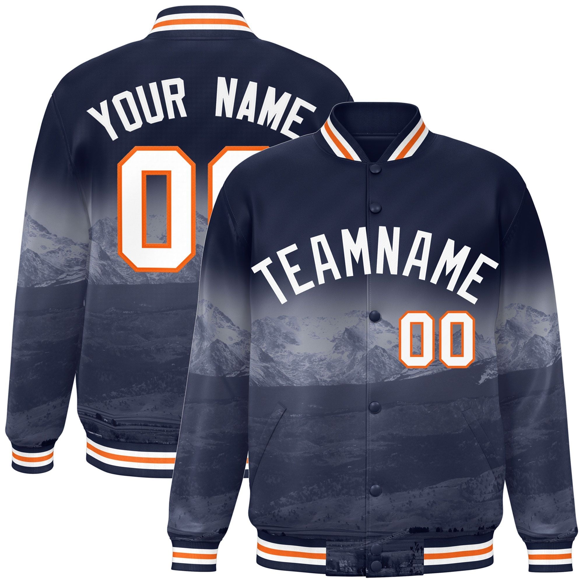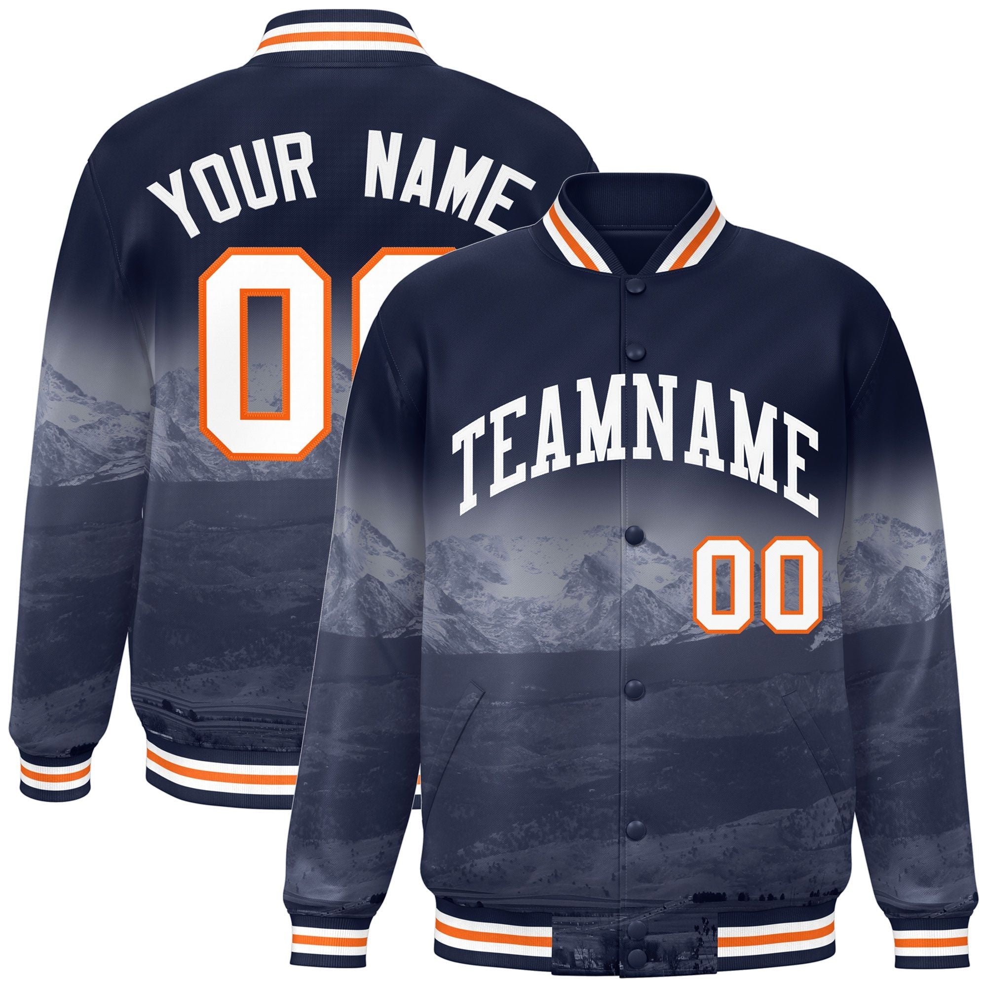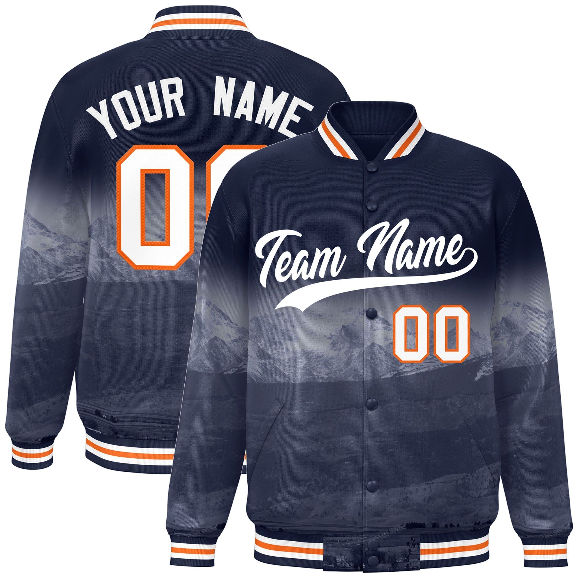 Custom Navy White Denver City Connect Track Varsity Full-Snap Jacket