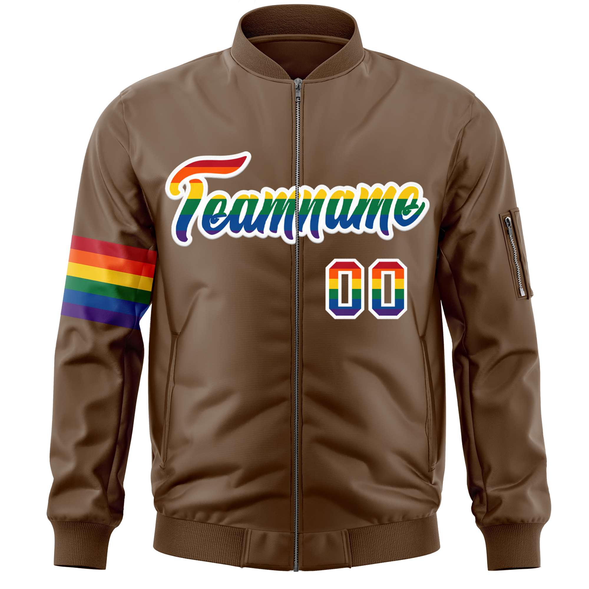 Custom Light Brown LGBT Rainbow For Pride Month Classic Style Letterman Bomber Jacket