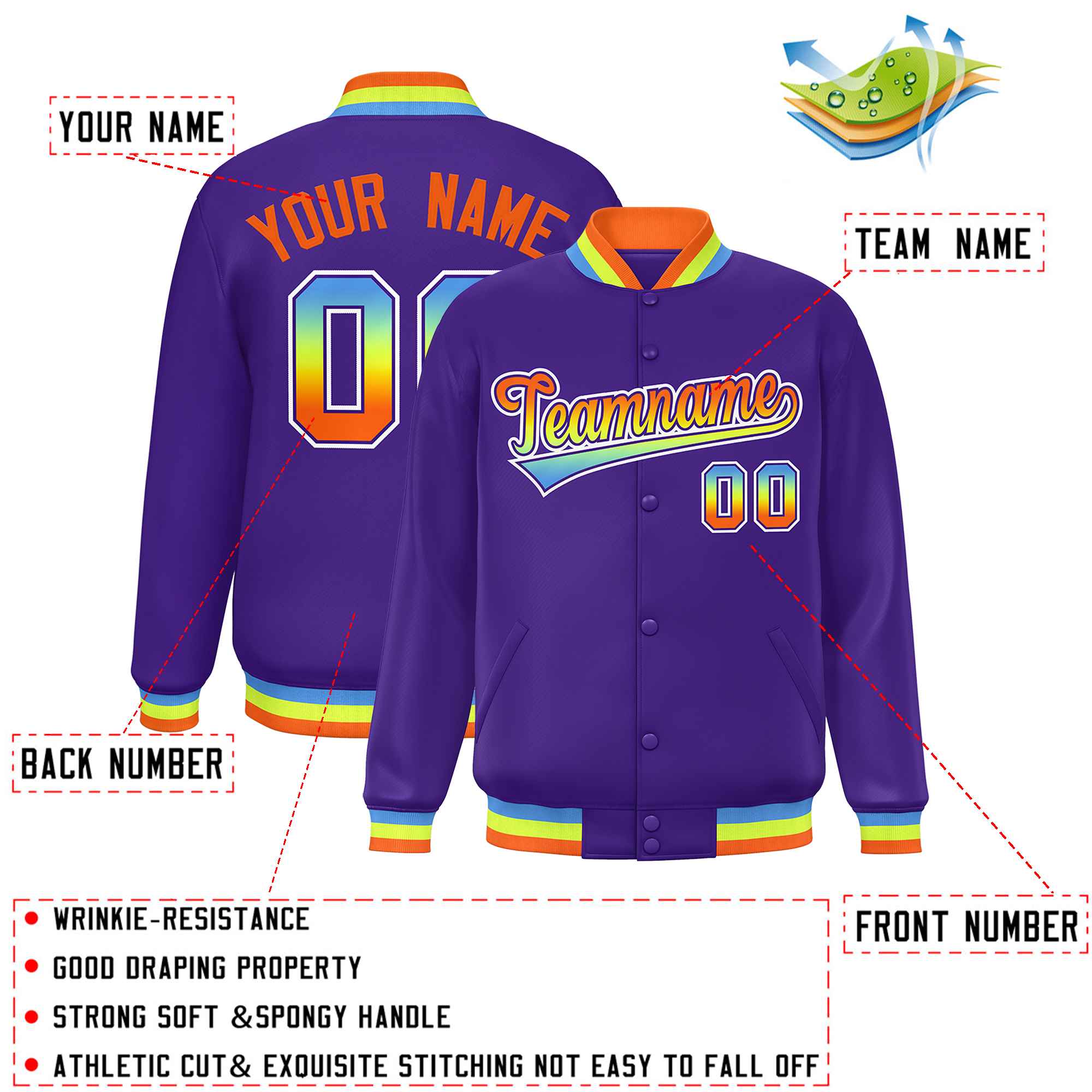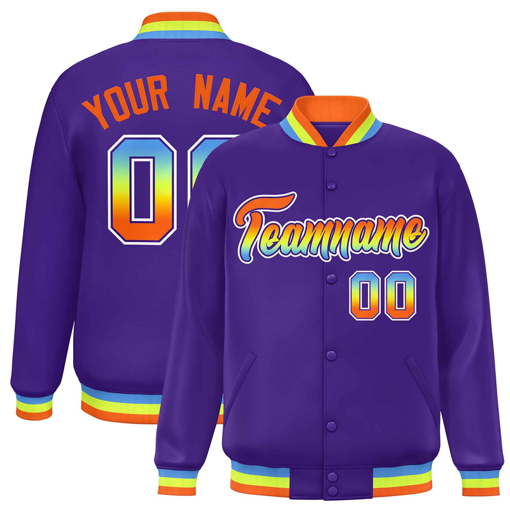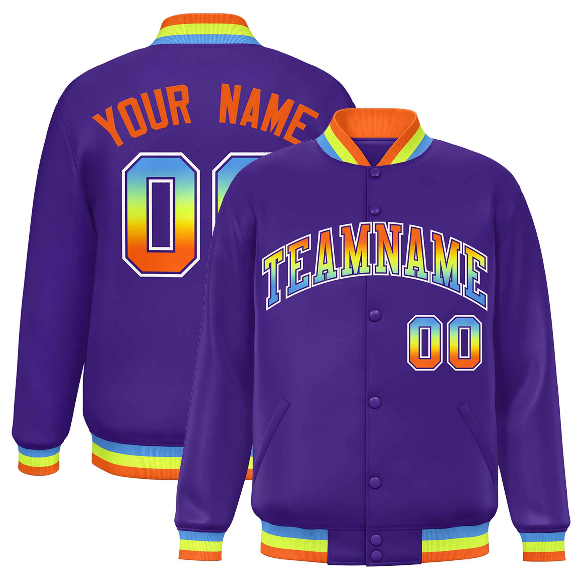 Custom Purple Varsity Full-Snap Gradient Font Letterman Baseball Jacket